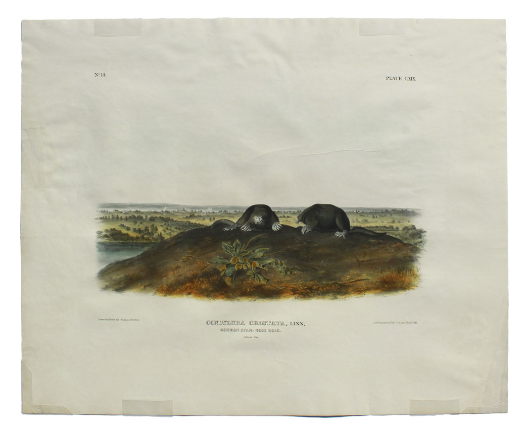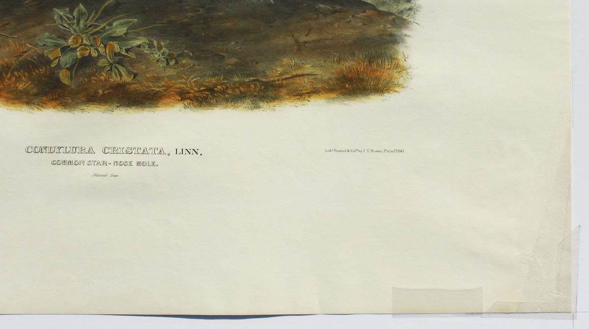 ORIGINAL AUDUBON ELEPHANT FOLIO LITHOGRAPH OF THE COMMON STAR NOSED MOLE, FROM THE VIVIPAROUS QUADRUPEDS OF NORTH AMERICA: 21 1/4'' x 26 3/4'', number 14 plate 19 in acid free mating and backing, encased in clear plastic envelope.