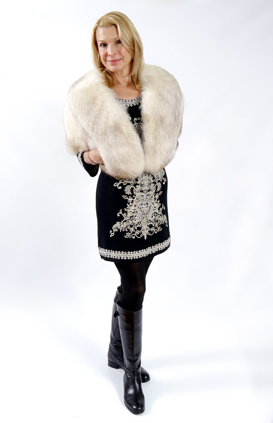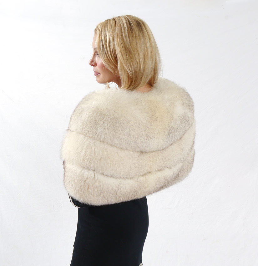 BLUE FOX FUR CAPE: Originally purchased from Florida Fur Fashions, New York & St Petersburg. Fully lined and monogrammed EDR. Luxurious extra wide collar. Measures approx. 15''l.