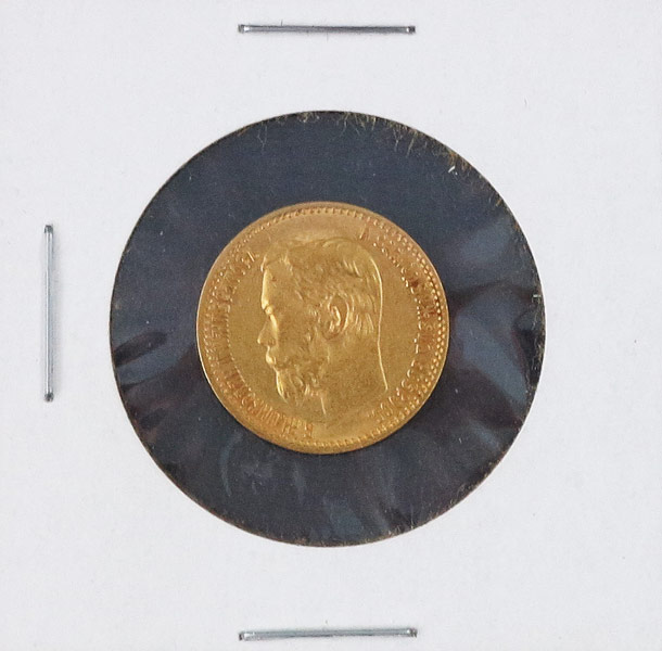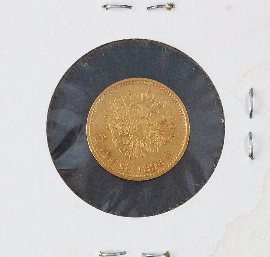 1898 RUSSIAN 5 RUBLE GOLD COIN: 4.3 grams, .900 gold content. Ungraded.