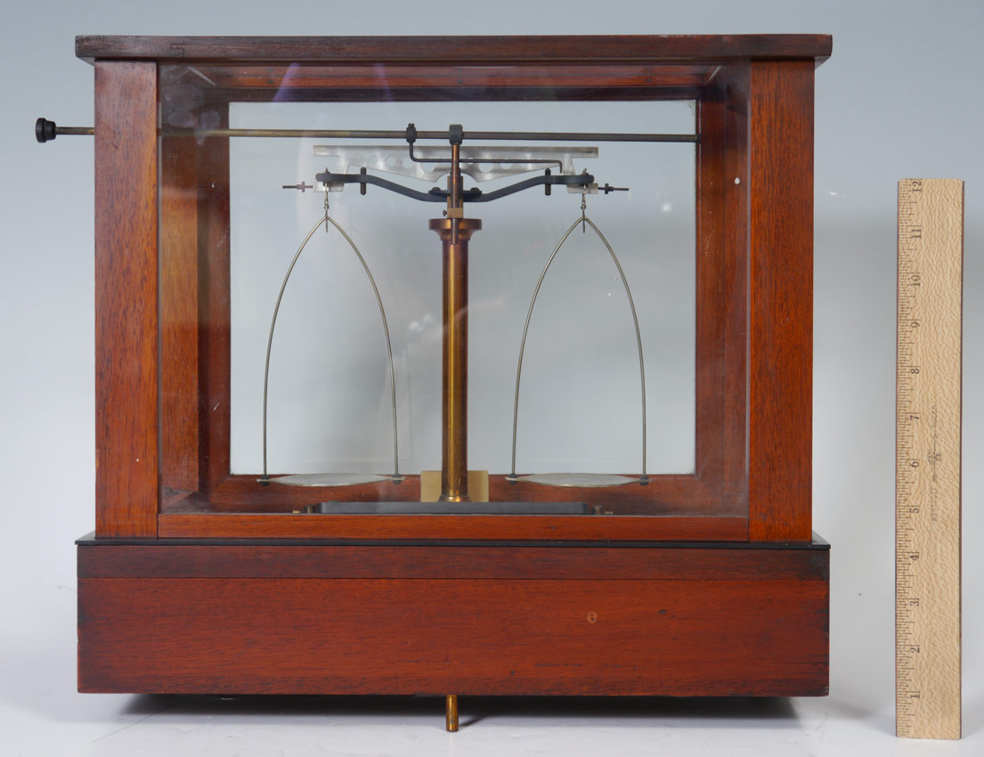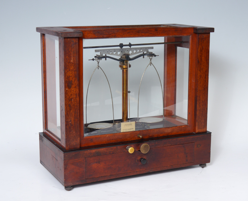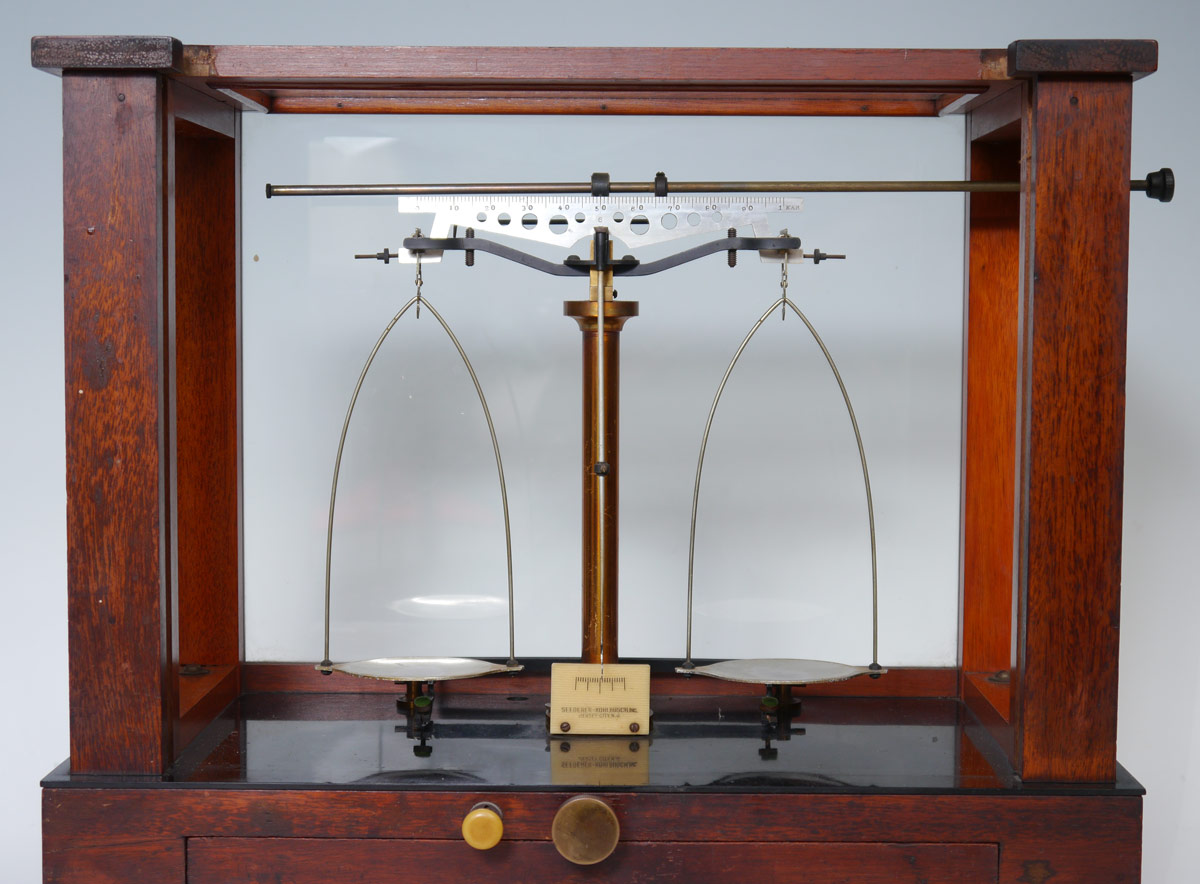 SEEDERER-KOHLBUSCH SCIENTIFIC BALANCE SCALE: Wood case with interior scale, single lower drawer, overall measures 14 1/2'' x 16 1/2'' x 8''.