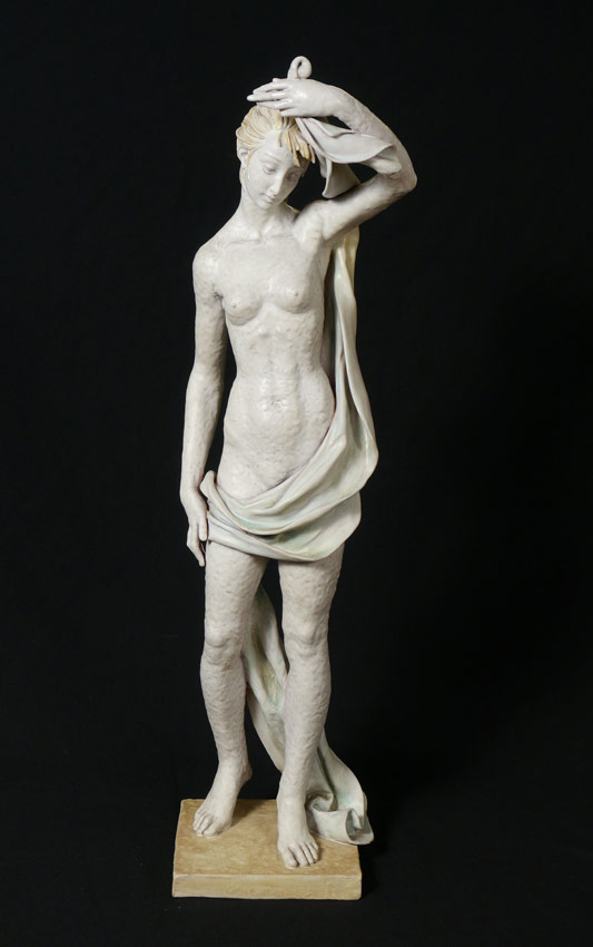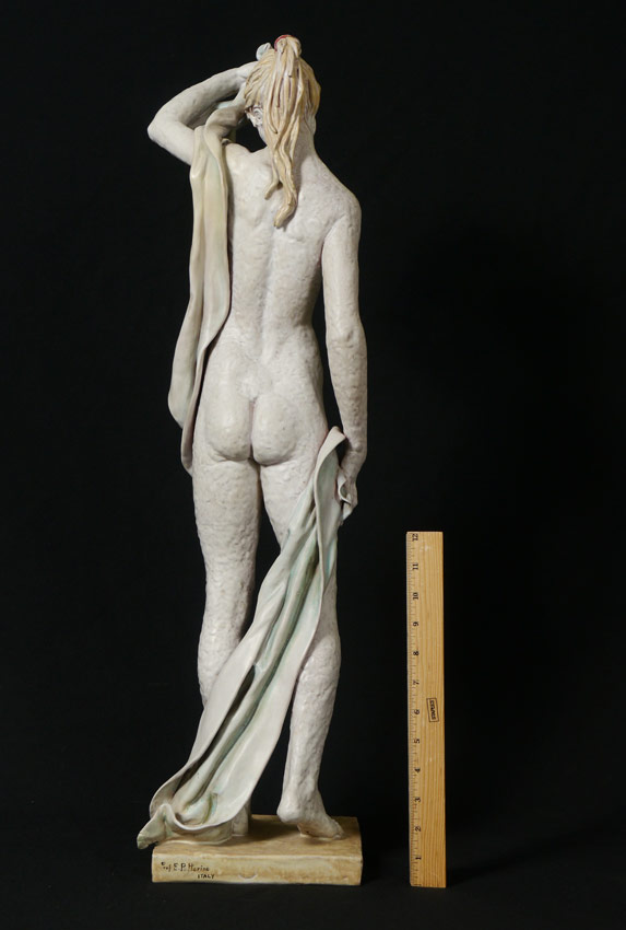 PATTARINO, Eugenio, (Italian, 1885-1971): Female Nude Draped, Glazed Ceramic, 31'' h., signed on the base verso.