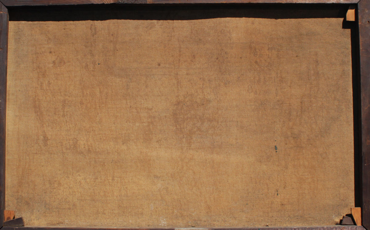 CONDITION: Scattered craquelure, several flecks of paint loss and larger areas of paint loss in upper margin and lower right corner, in need of cleaning and some minor repair, sold as is.