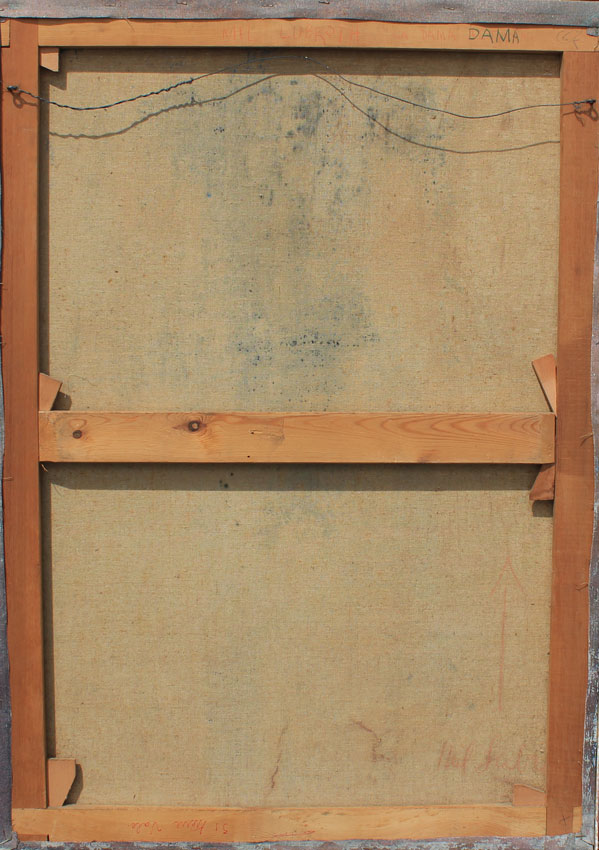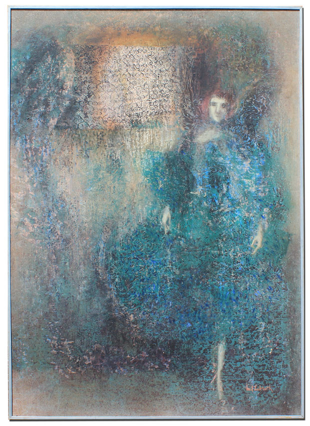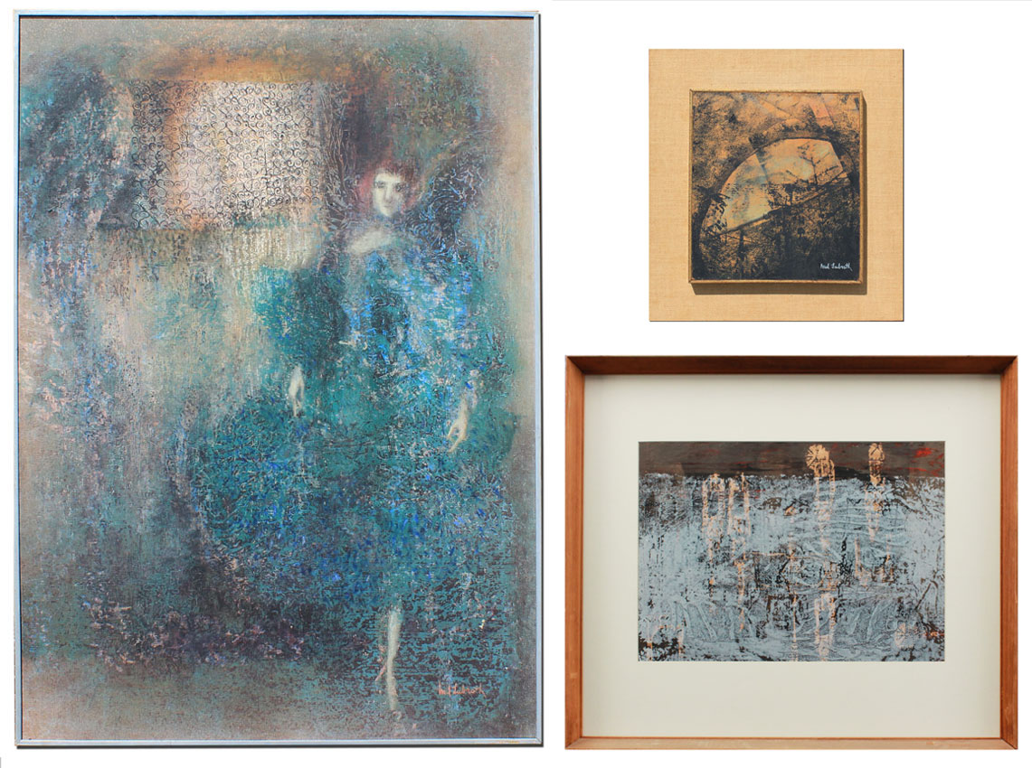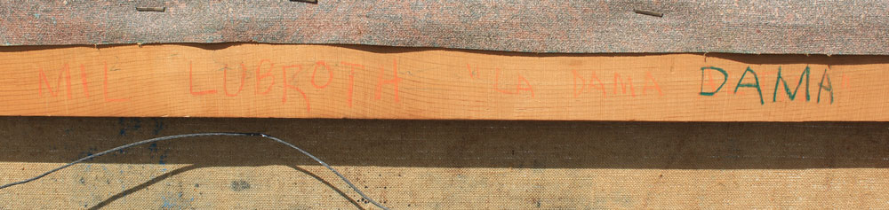 LUBROTH, Mildred, (American, 1926-2004): 3 PIECE ARTWORK LOT TO INCLUDE 1) ''La Dama Altiva'', Oil/Canvas, 40'' x 28 1/2'', signed lower right, framed 41'' x 29''. 2) Mixed Media Abstraction, 10 1/2'' x 9 1/4'', custom mat frame, 10 1/2'' x 14 1/2'', illegibly inscribed verso. 3) Mixed Media Abstraction on Paper, Sight size 12'' x 17'', signed lower right, in frame 21 3/4'' x 25''. All three pieces were acquired from the artist.