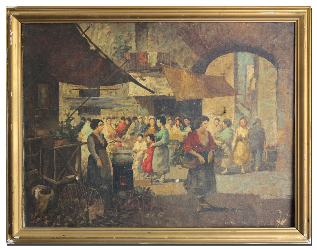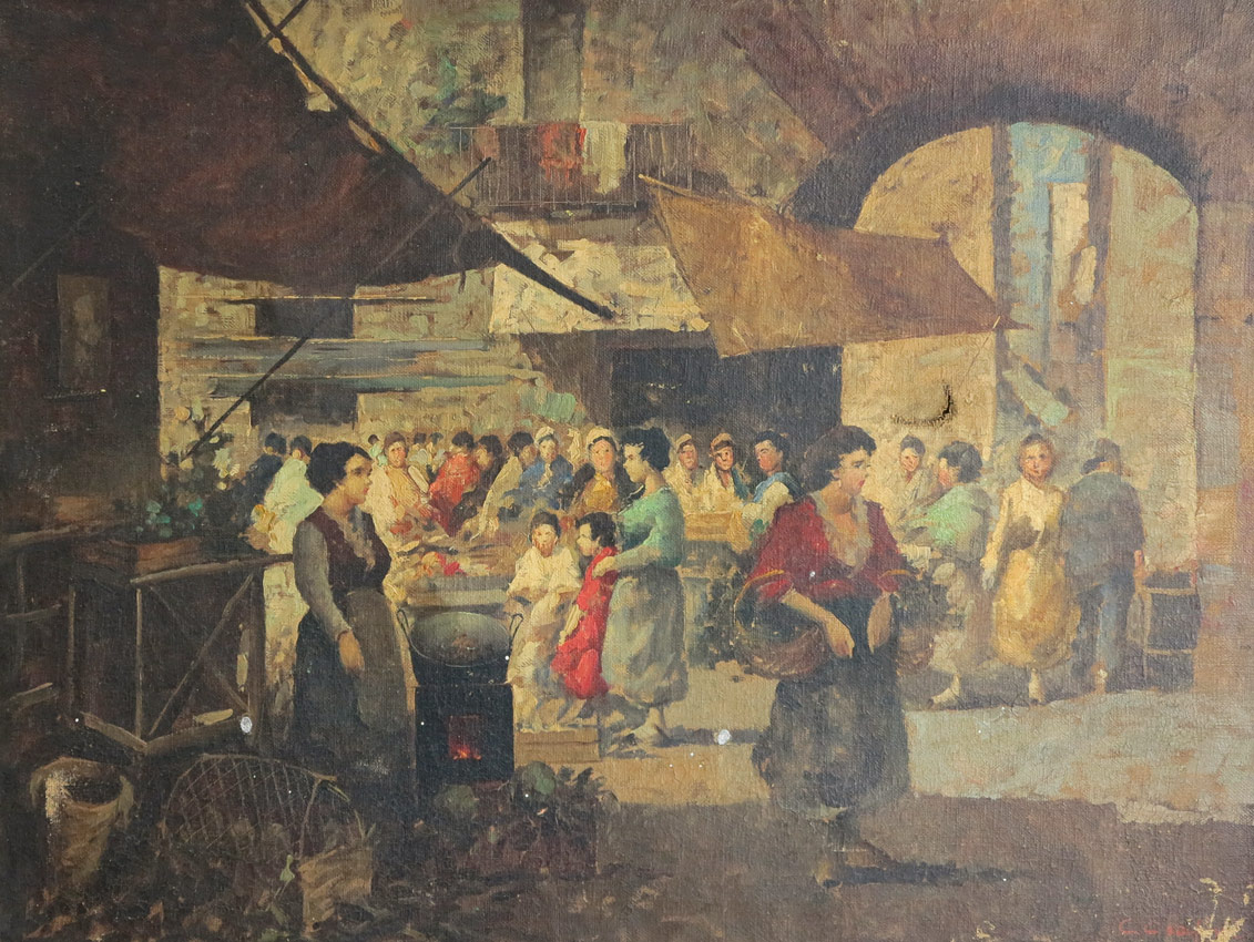 CIAPPA, Carlo, (Italian, 20th C.): Busy Italian Market Place, Oil/Canvas, 23 3/4'' x 31 1/2'', signed lower right, encased in period gilded frame with wear and overpaint, 27 1/4'' x 35''.