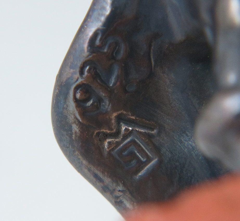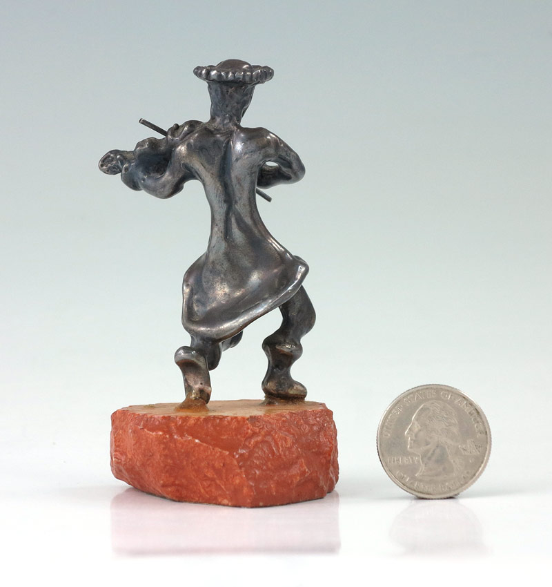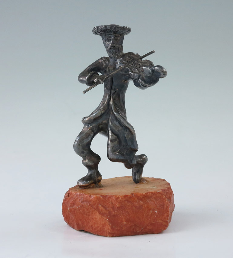 GROSS, Chaim, (American, 1904-1991): Jewish Fiddler, Sterling Sculpture, 2 7/8'' h., stamped monogram marked 925, affixed to red stone plinth, 3 1/2'' overall.