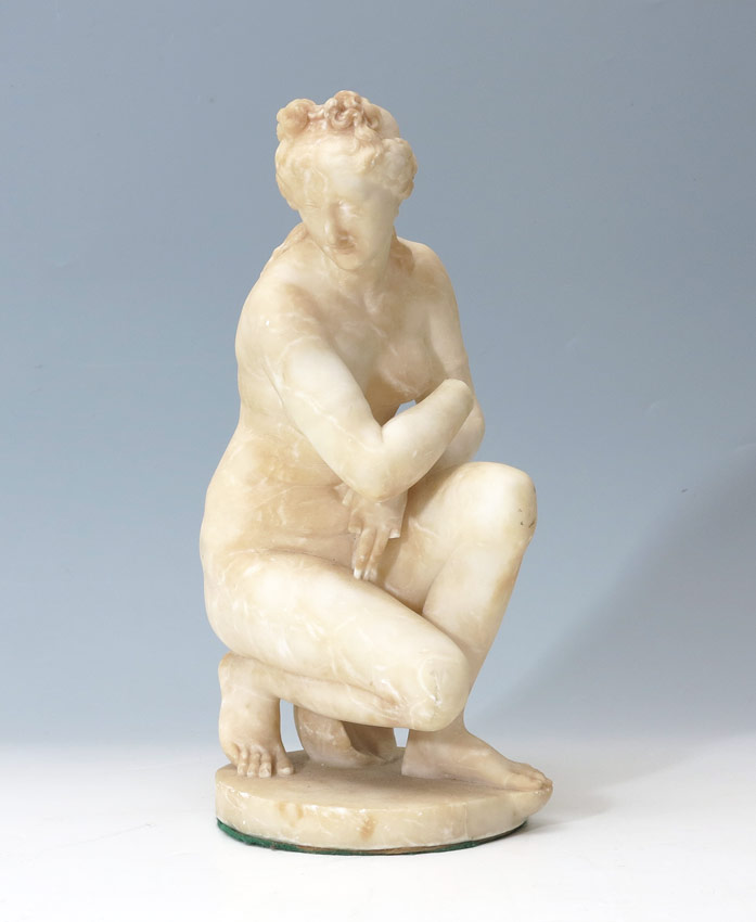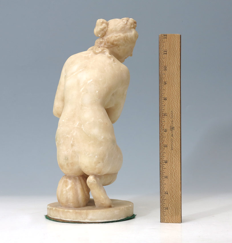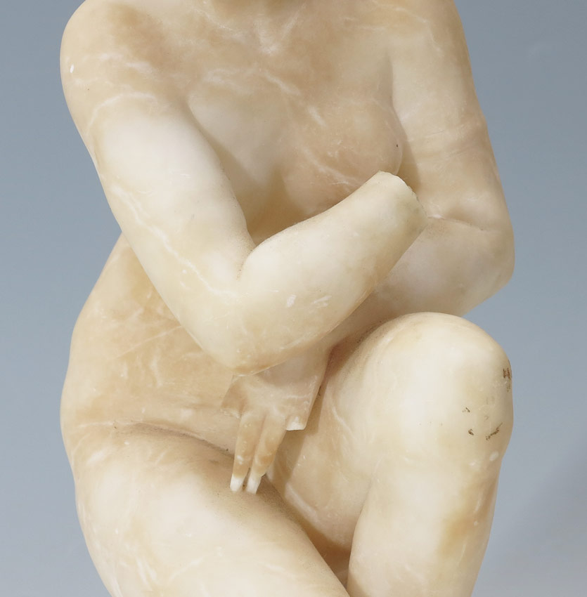 ITALIAN CARVED ALABASTER KNEELING NUDE SCULPTURE: 14'' h., no visible signature, circa 1910.
