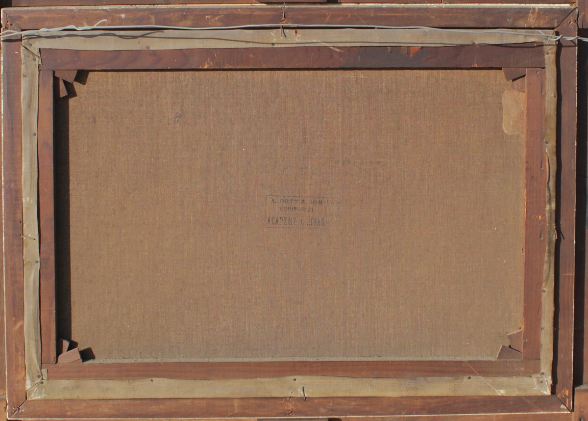 CONDITION: Stretcher bar wear, minor craquelure, small area of inpaint in upper right corner with patch verso.