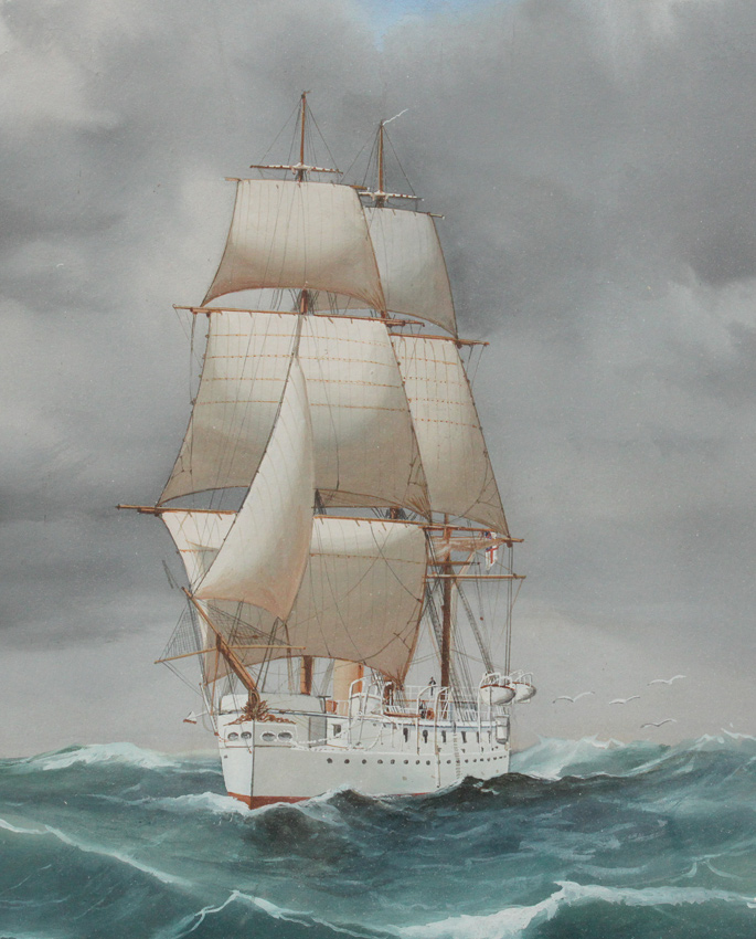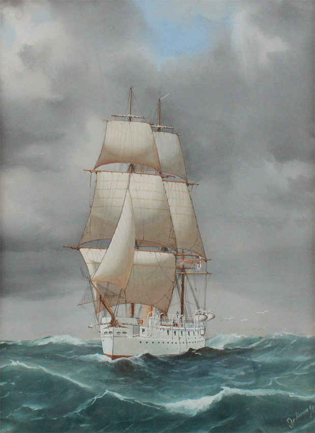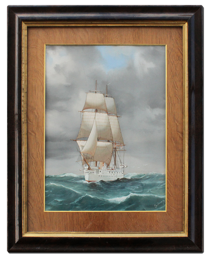 DE SIMONE, Tommaso, (Italian, 1805-1888): Clipper Ship at Sea, Gouache, 16 1/2'' x 12 3/8'', signed lower right, dated '90, encased in a faux grain frame, measures 24'' x 19 1/2''.