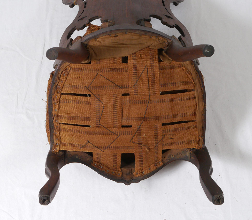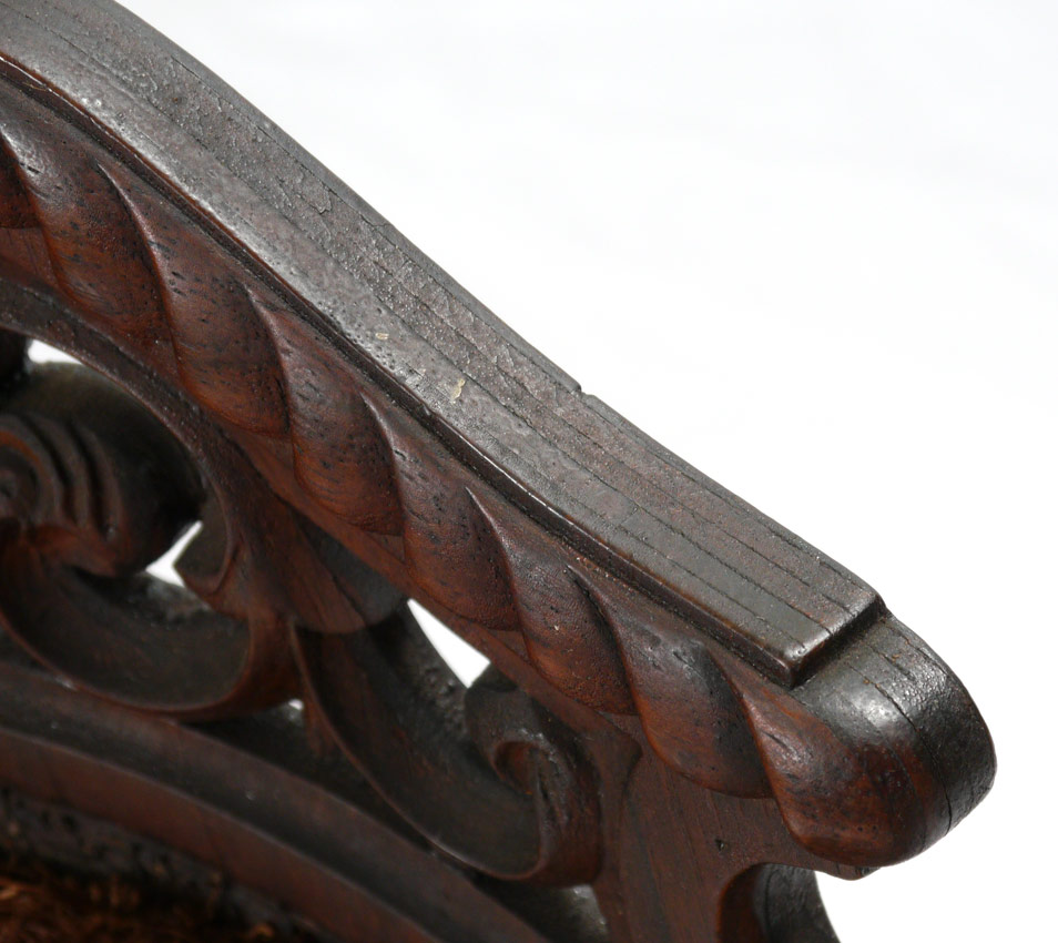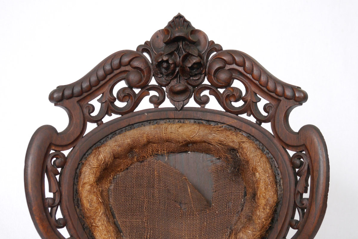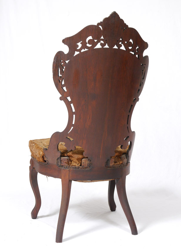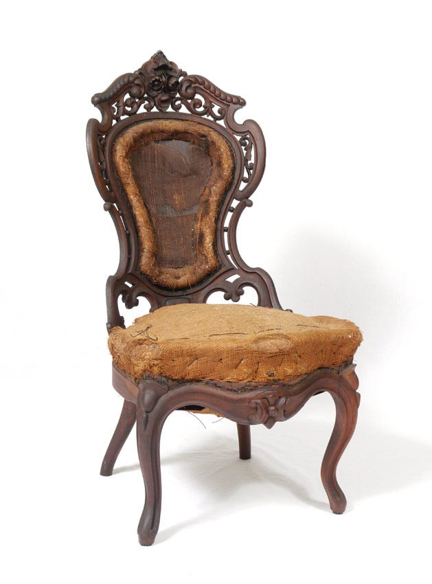 MEEKS STANTON HALL LAMINATED ROSEWOOD SIDE CHAIR: Victorian side chair in the ''Stanton Hall'' pattern by J. & J. W. Meeks, laminate construction with carved and pierced frame. Shaped apron and legs. Overall measures 39'' h. x 19'' x 24''.