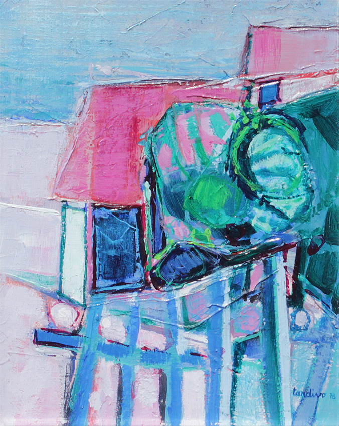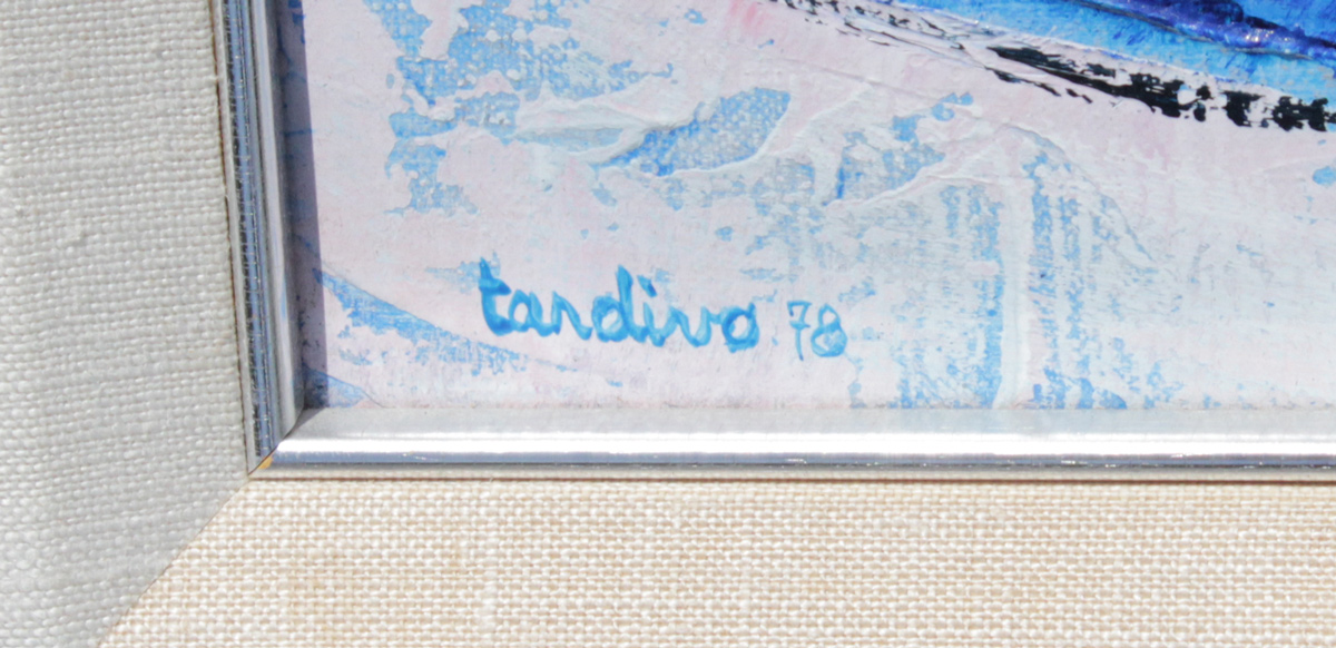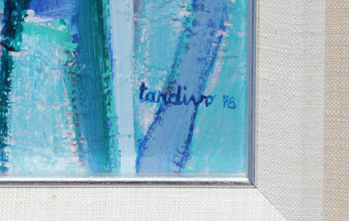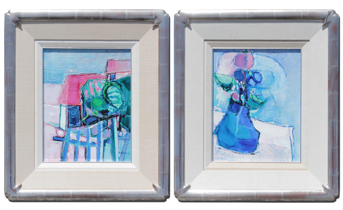 TARDIVO, Jean-Claude, (French, 1935- ): Two Abstract Oil/Canvas Paintings, one Depicts a Landscape and the other a Still Life, both measure 14'' x 10 1/2'', both are signed, encased in custom silver gilt frames, 22 1/4'' x 19 1/4''.
