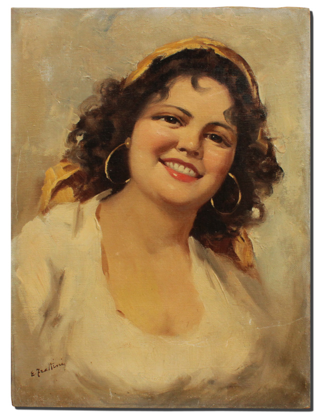 FRATTINI, Enrico (Italian, 1890-1968): Young Gypsy Girl, Oil/Canvas, 16'' x 12'', signed lower left, unframed.