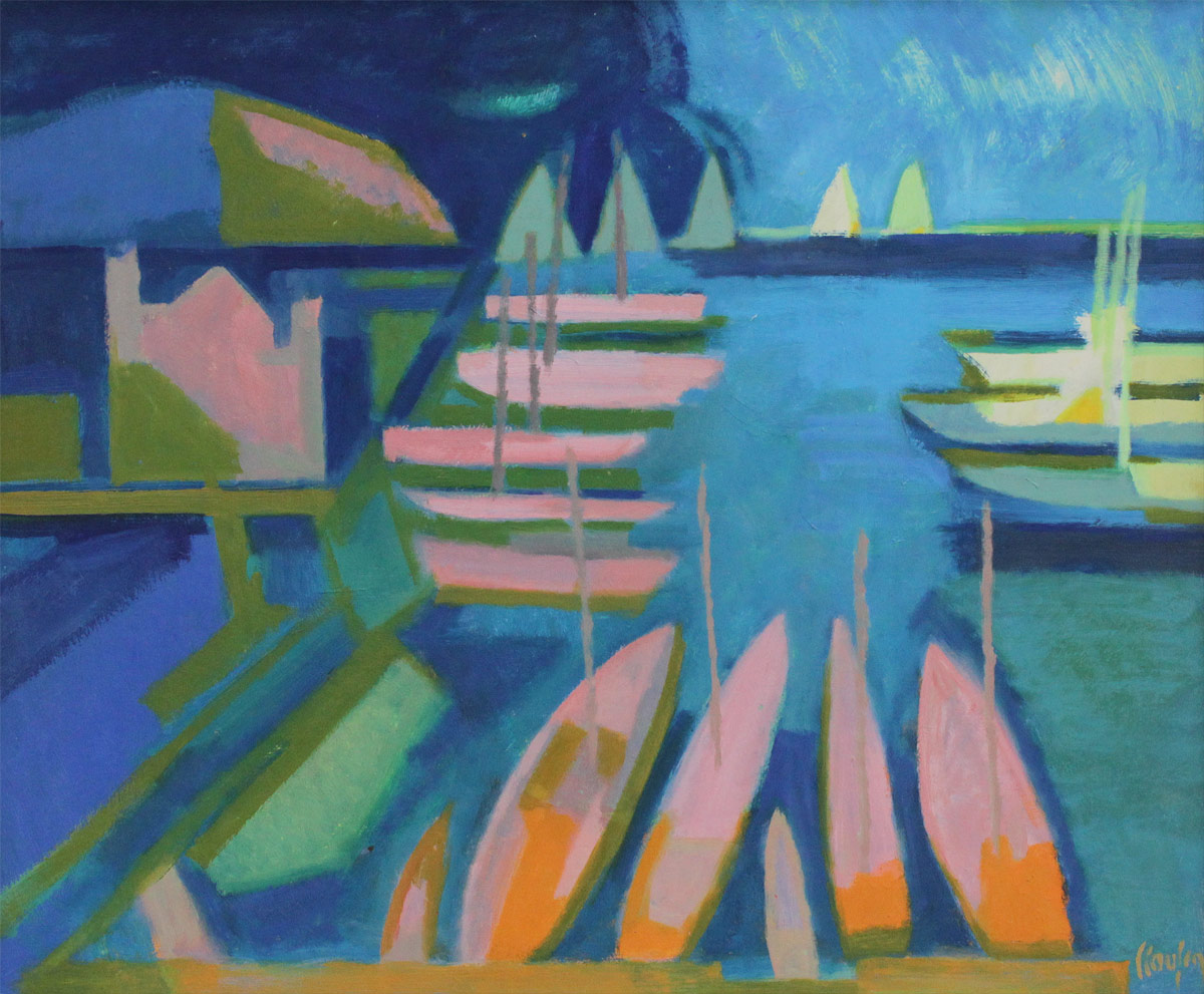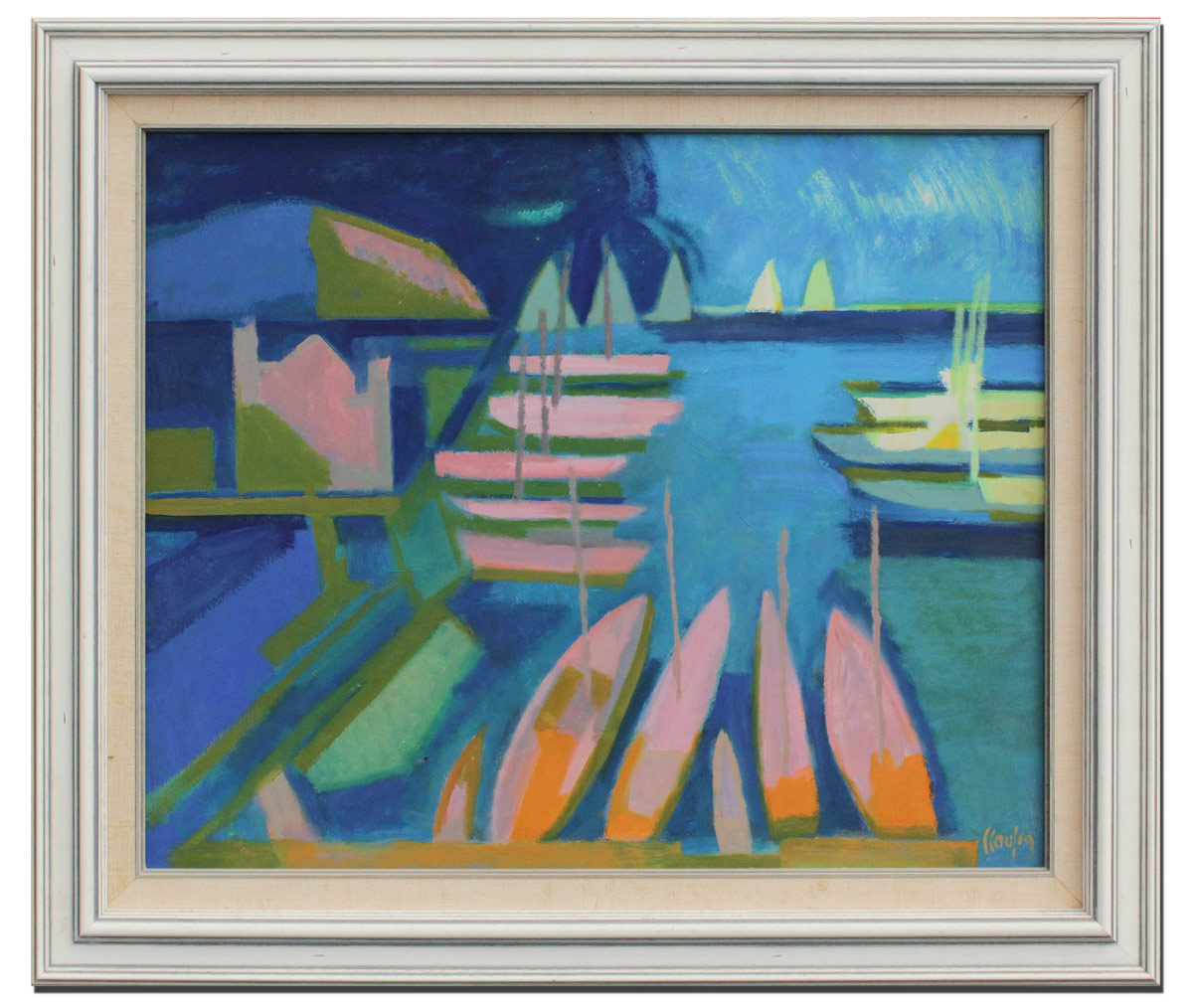 CLAUSEN, Henri, (Danish, 1909- ): Tropical Dockside Scene, Oil/Masonite, 19 3/4'' x 24'', signed lower right, signed verso, dated '84, encased in custom frame 25 1/4'' x 29 1/2''.
