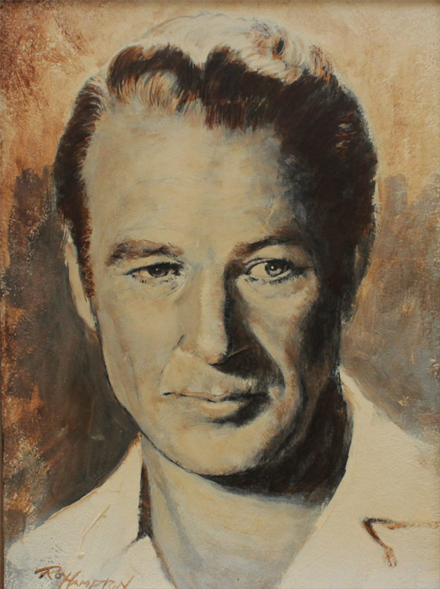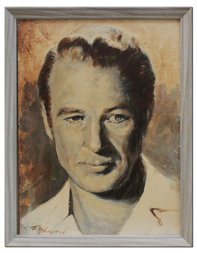 HAMPTON, George LeRoy (Roy), (American, 1923-1997): Portrait of Gary Cooper, Oil/Board, 12 3/4'' x 10'', signed lower left, framed 14'' x 11''.