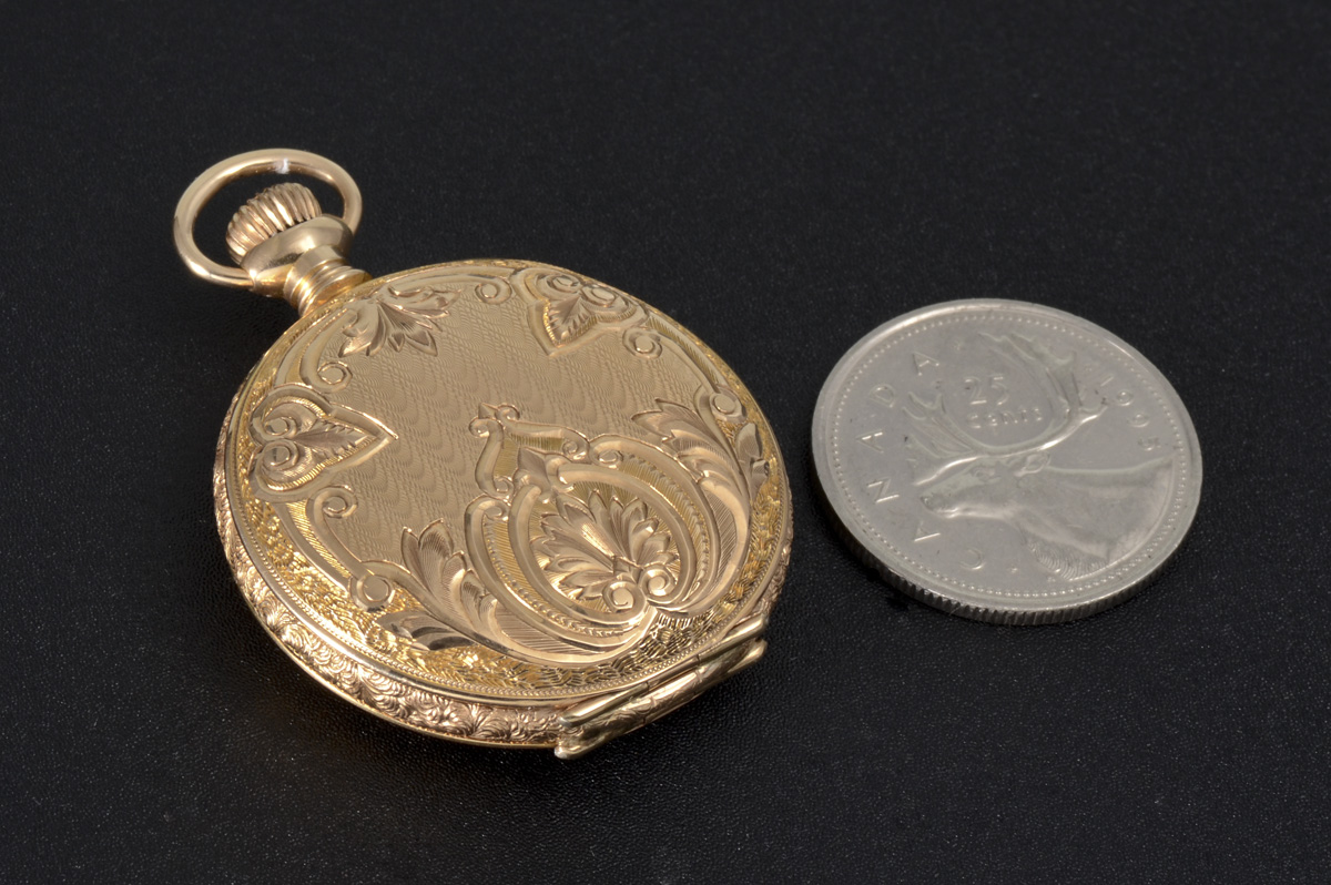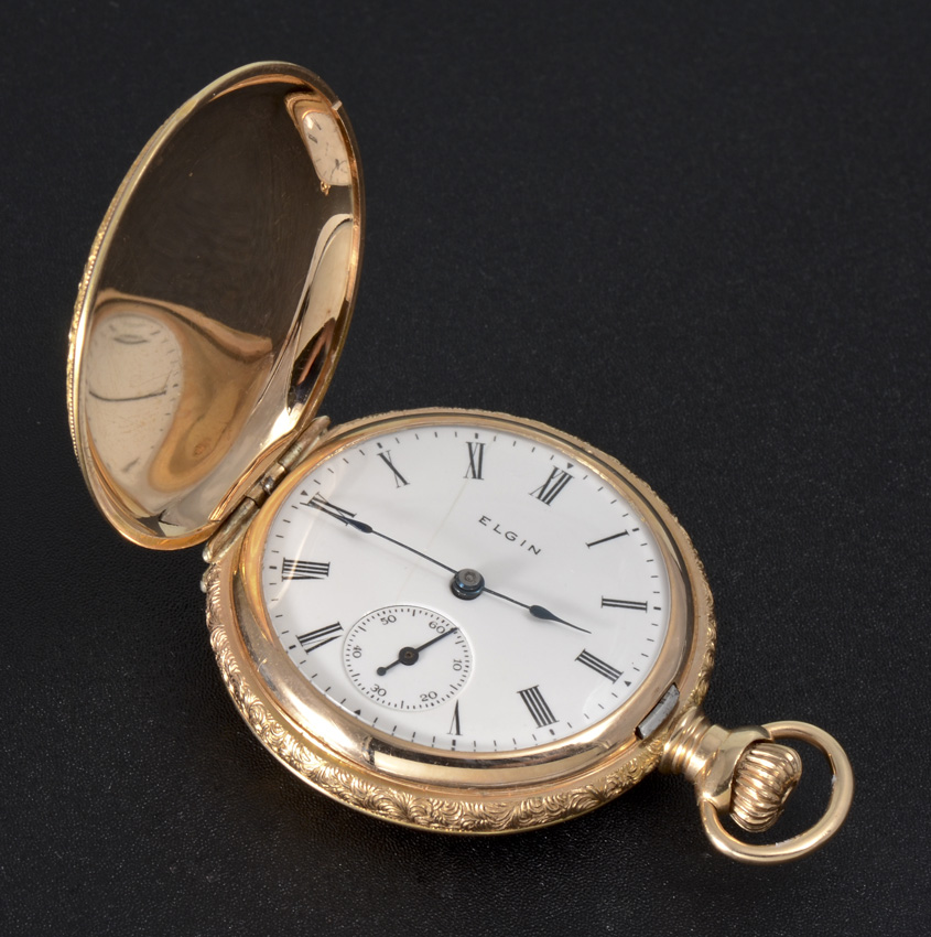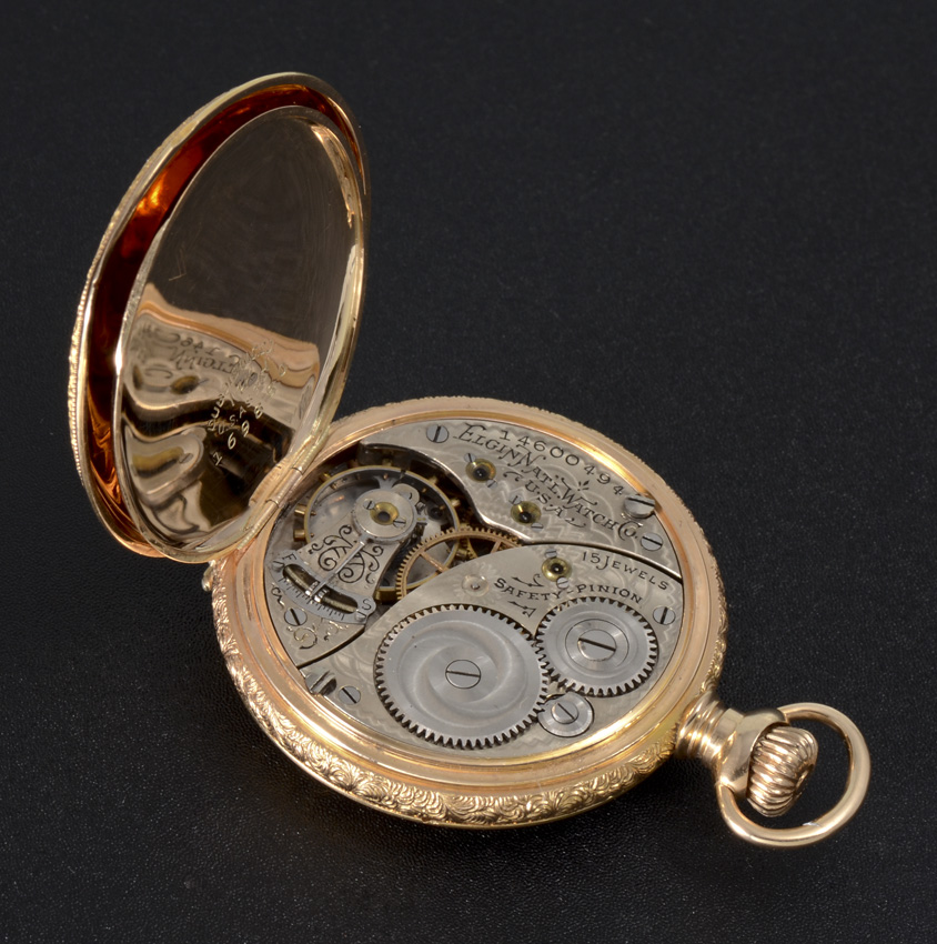 14K YELLOW GOLD ELGIN HUNTER CASE POCKET WATCH: Circa 1909, size 0 hunter case, 15 jewel movement, pendant wind and set, serial #14600494.