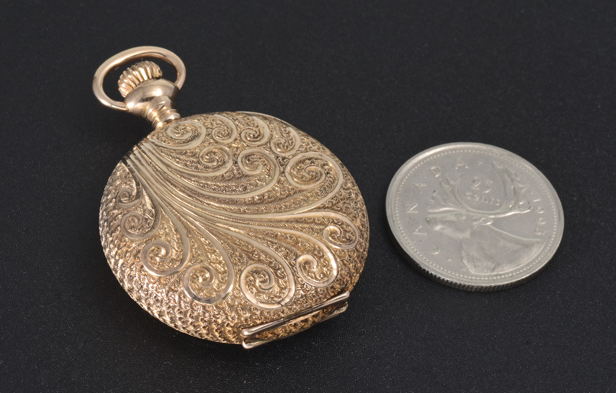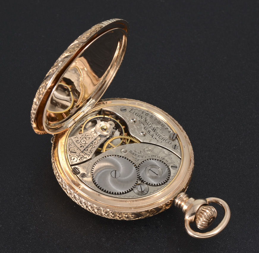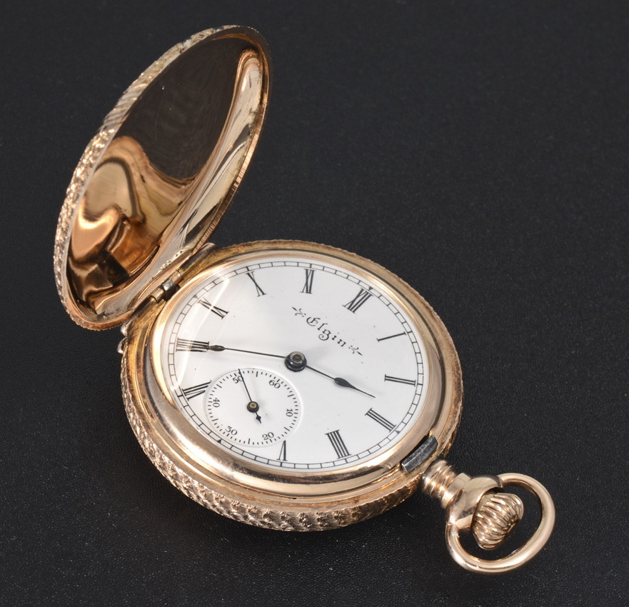 14K YELLOW GOLD ELGIN HUNTER CASE POCKET WATCH: Circa 1903, size 0 hunter case, 15 jewel movement, pendant wind and set, serial # 10578074.