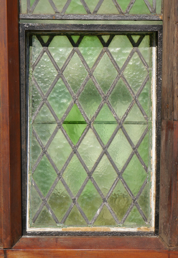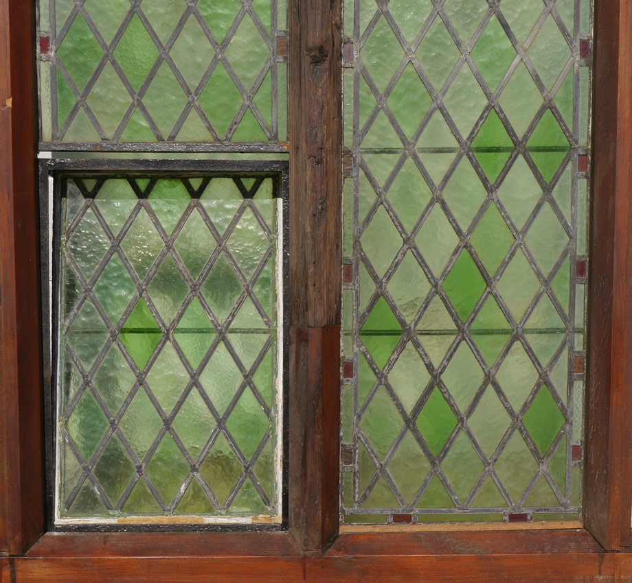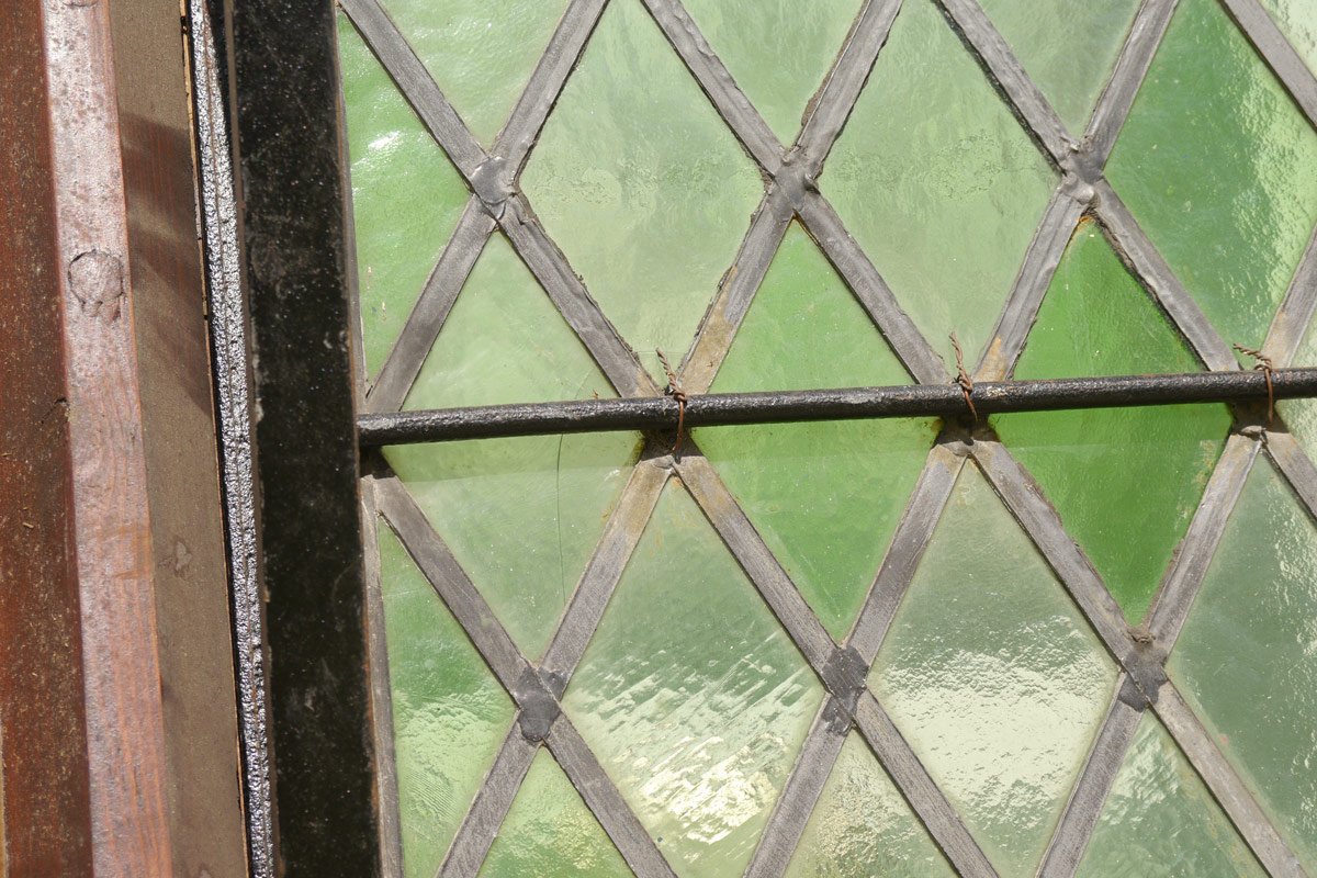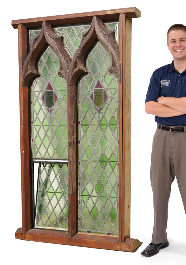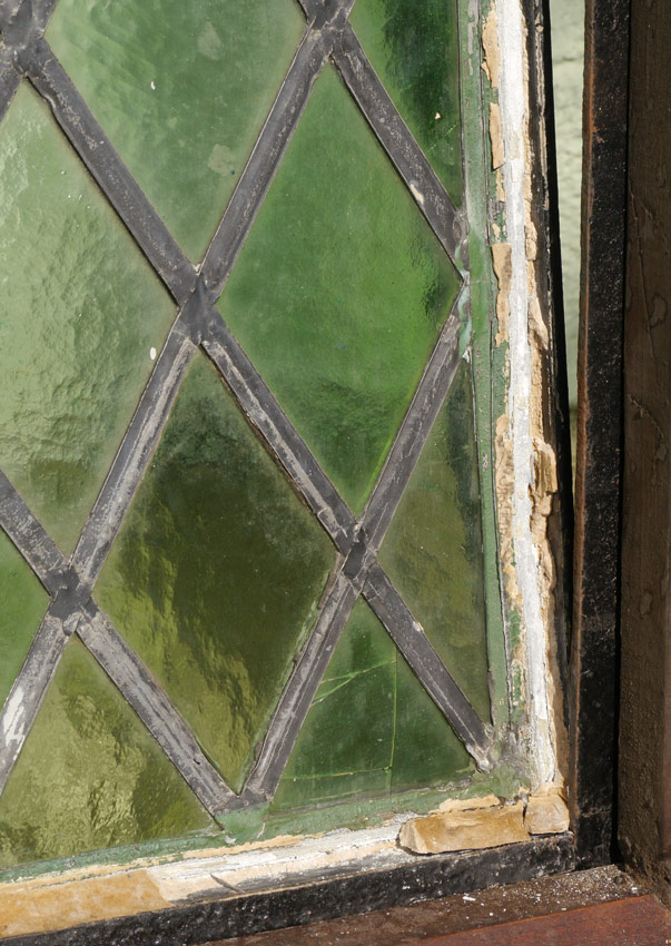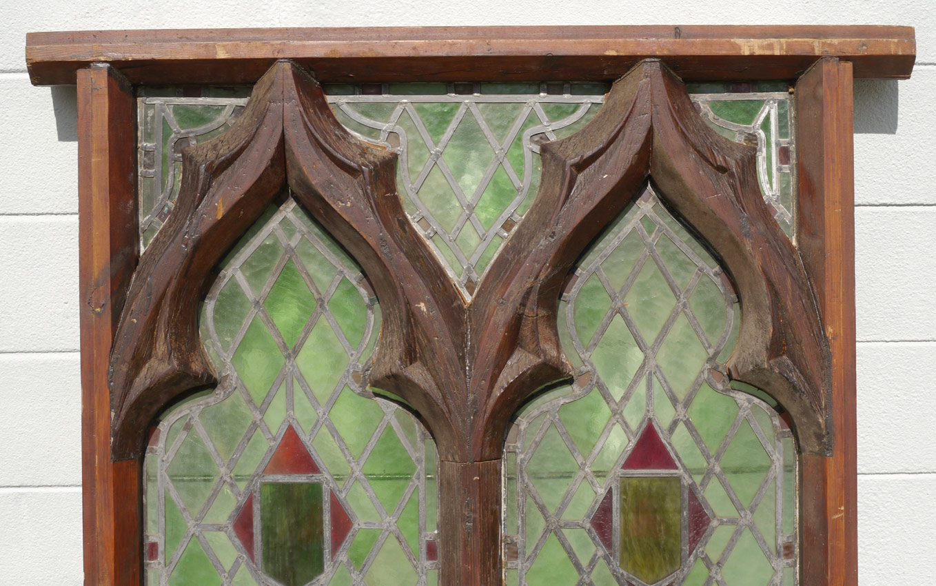 STAINED GLASS WINDOW FROM ENGLISH MONASTERY: With vent, frame measures approx. 76 3/4'' h. x 47 1/4'' overall.