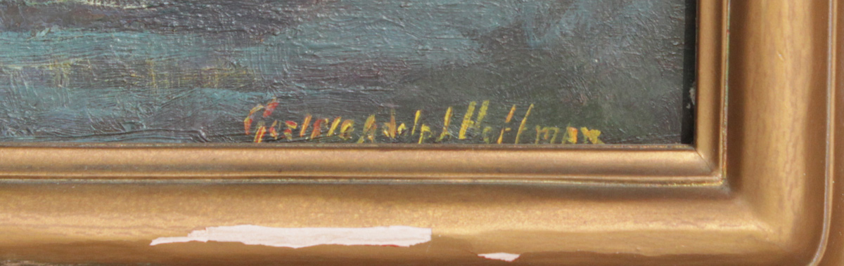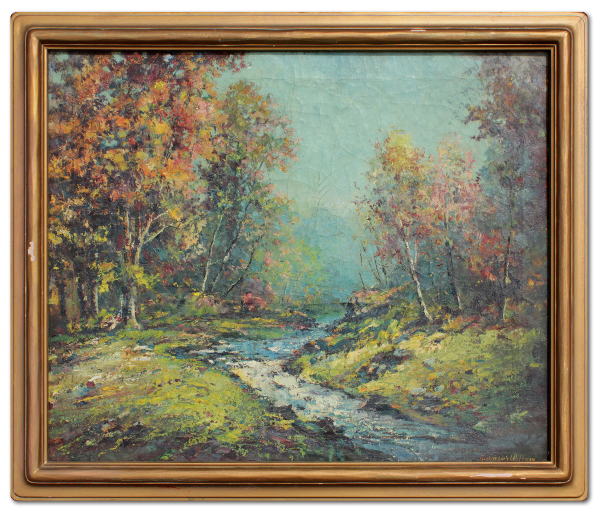 HOFFMAN, Gustave Adolph, (American, 1869-1945): Spring Landscape with Stream, Oil/Canvas, 24'' x 30'', original gilded frame with wear 28 1/4'' x 34 1/4'', signed lower right.