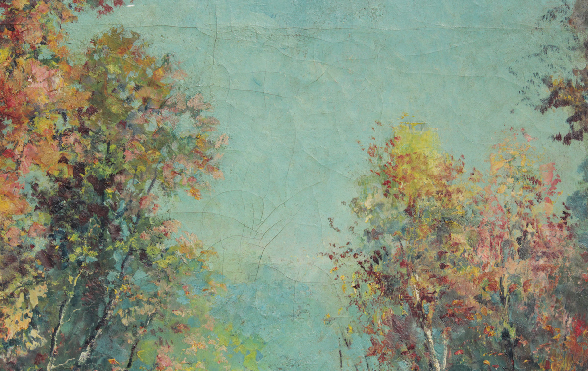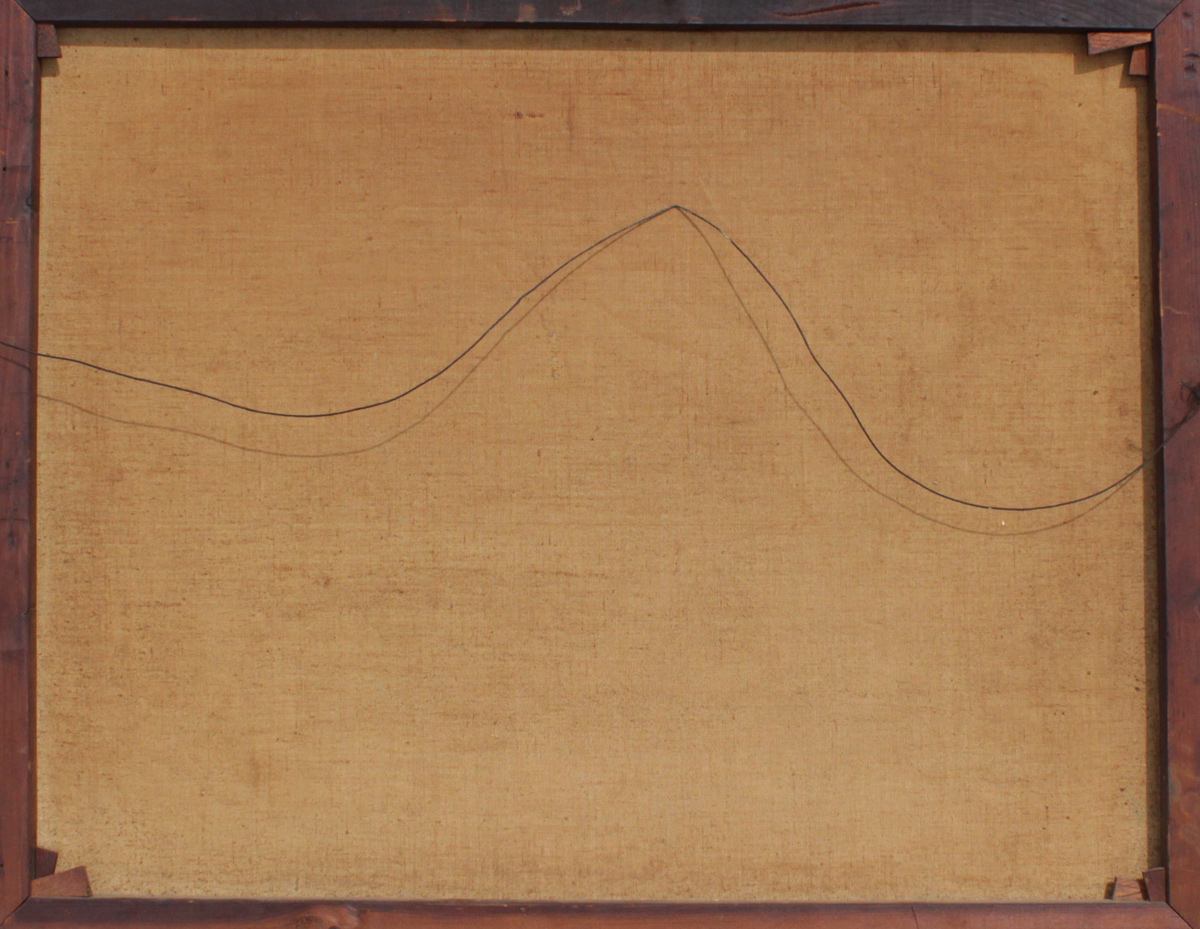 CONDITION: Several flecks of paint loss, craquelure visible in upper mid margin extending to the middle of the painting, stretcher bar wear.