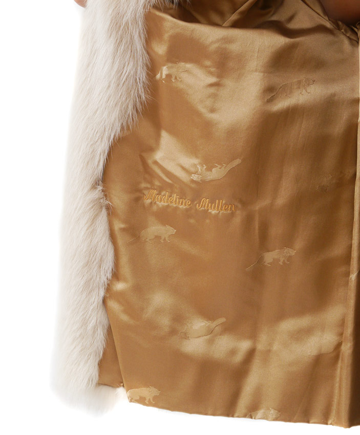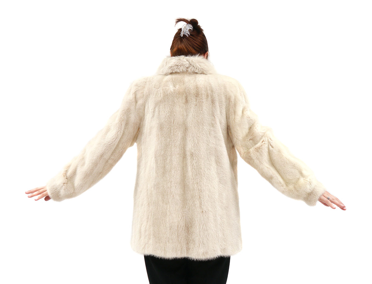 WHITE MINK & FOX FUR JACKET: Car coat length white mink jacket trimmed in plush white fox, slit pockets, fitted cuffs, fox pattern lining, Anastasia Furs label. Approx. 33'' collar to hem, 24'' shoulder to cuff and 19'' shoulder to shoulder.