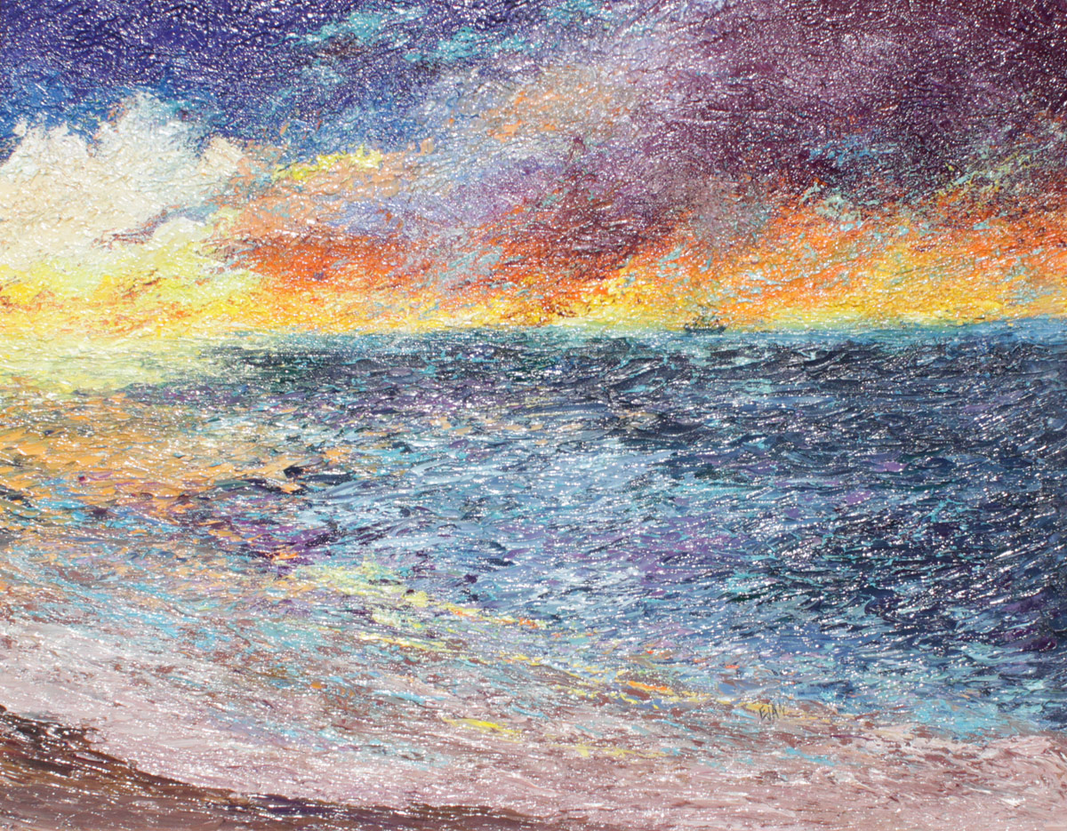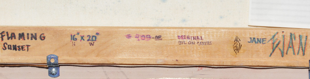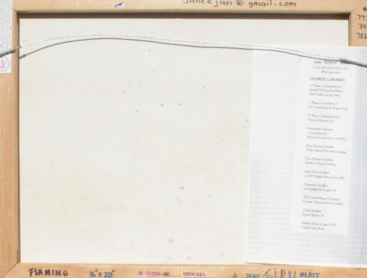 BLATT, Jane, ''EJAN'', (American, 20th C.): ''Flaming Sunset'', Oil/Canvas, 16'' x 20'', signed lower right, signed and titled verso, framed, 19'' x 23 1/2''.