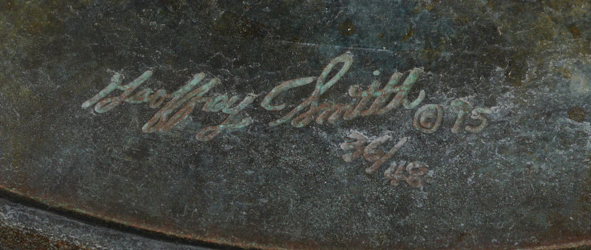 SMITH, Geoffrey L., (American, 20th/21st Century): Mallards in Flight, Patinated Bronze, 48'' h., approximately 24'' w., incised signature, dated '95, #'d 35/48 on beveled bronze base.