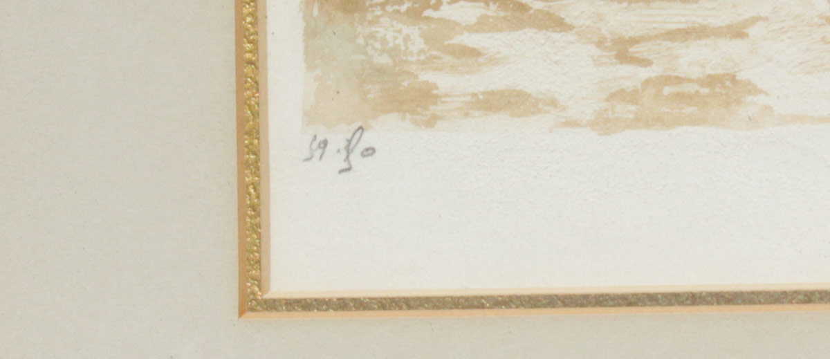 CONDITION: Powdery white mildew scattered throughout, print glued to mat.