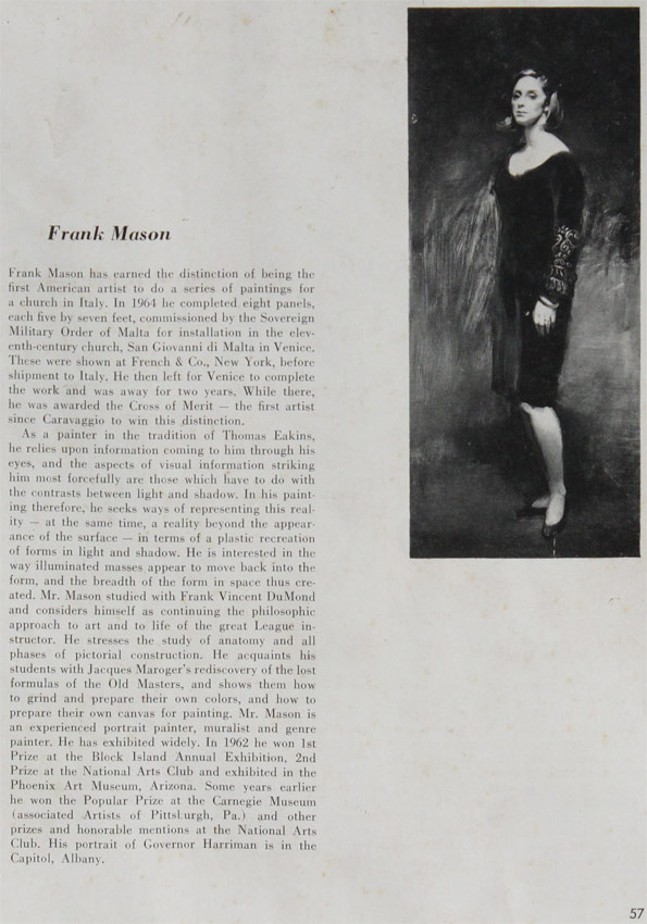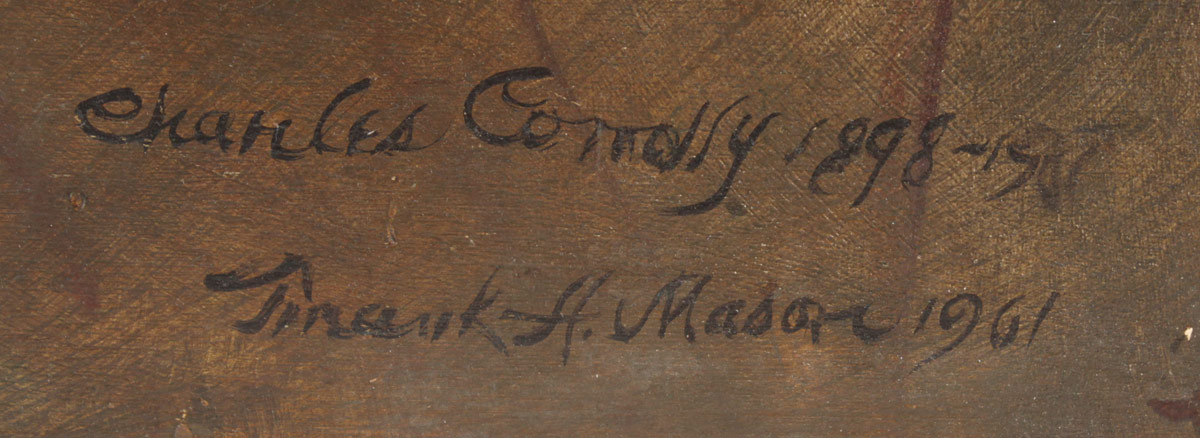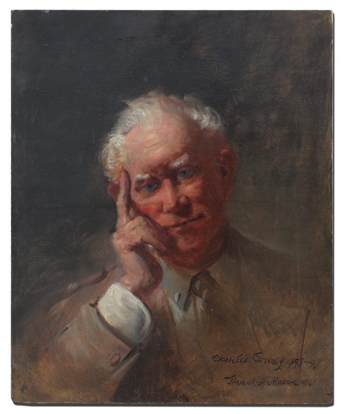 FRANK MASON PORTRAIT PAINTING OF CHARLES COMOLLY: Oil/Wood Panel, 24'' x 20'', unframed, signed lower right, date 1961.