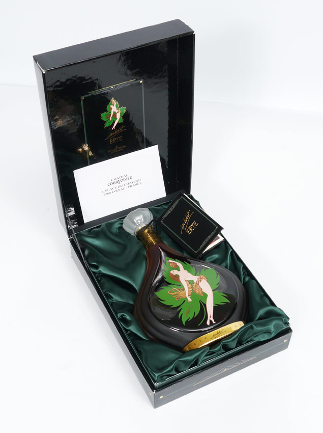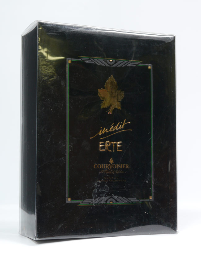 RARE ERTE FIRST BOTTLE FOR COURVOISIER INEDIT: Created for famous cognac maker Courvoisier by Deco master Erte, sold unopened in original box and paperwork, serial number 1629.