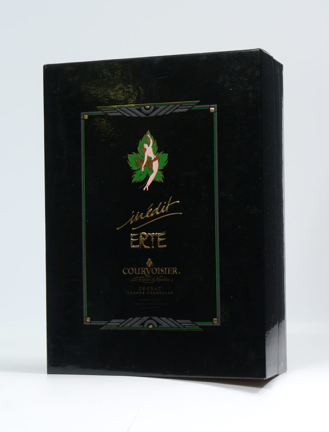 RARE ERTE FIRST BOTTLE FOR COURVOISIER INEDIT: Created for famous cognac maker Courvoisier by Deco master Erte, sold unopened in original box and paperwork, serial number 3971.