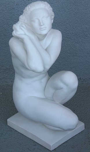 PARIAN SCULPTURE AFTER PIERRE TRAVERSE, FRENCH 1892-1979: Depicts a kneeling female nude, 12'' h, impressed signature and incised mark verso Sevres.