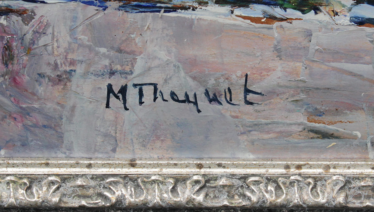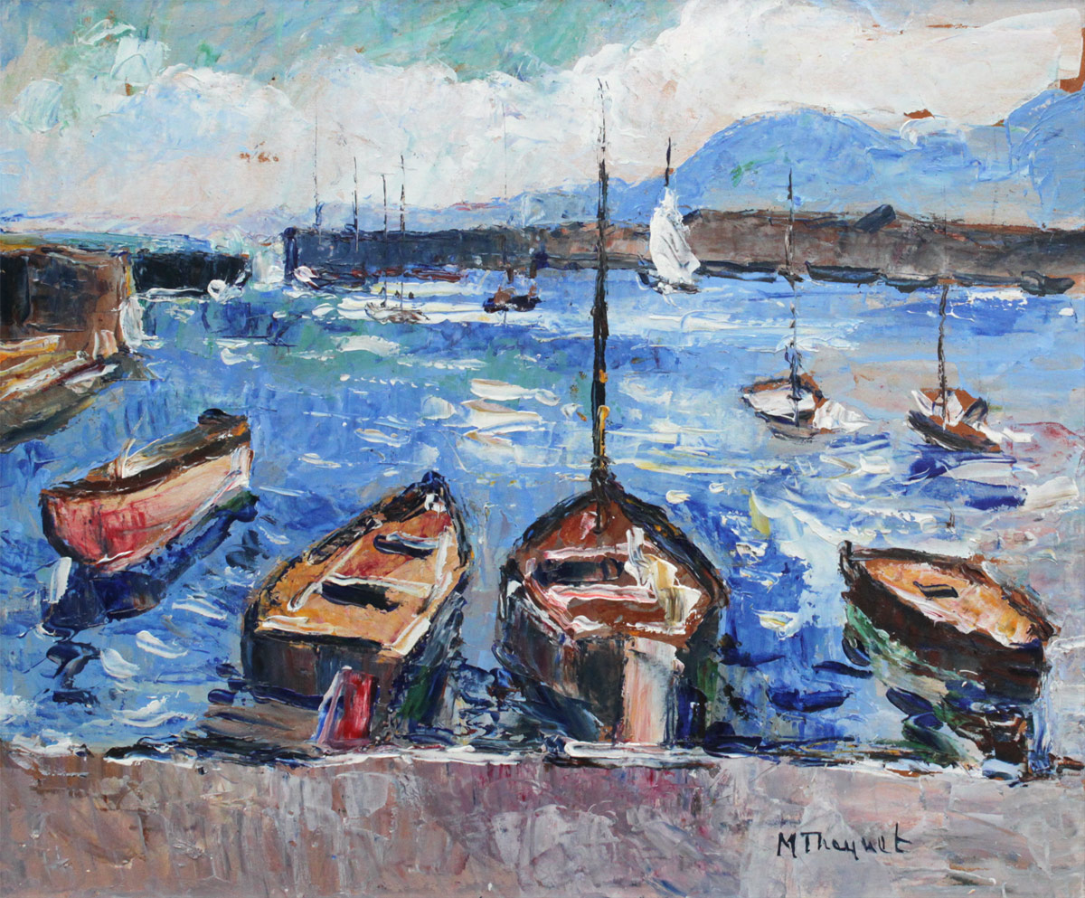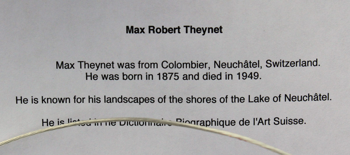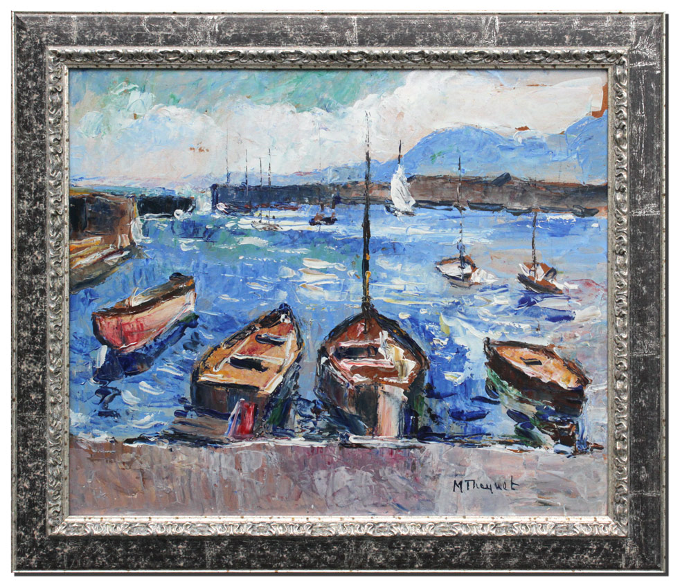 THEYNET, Max Robert, (Swiss, 1875-1949): Dockside Painting, Oil/Board, 19'' x 23 1/2'', signed lower right, custom frame 24'' x 28'', Theynet is known for his Landscapes of the Shores of the Lake Neuchatel.