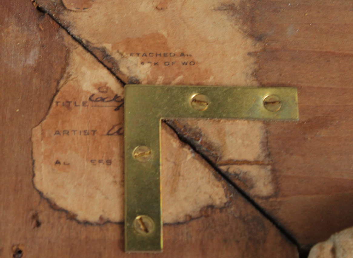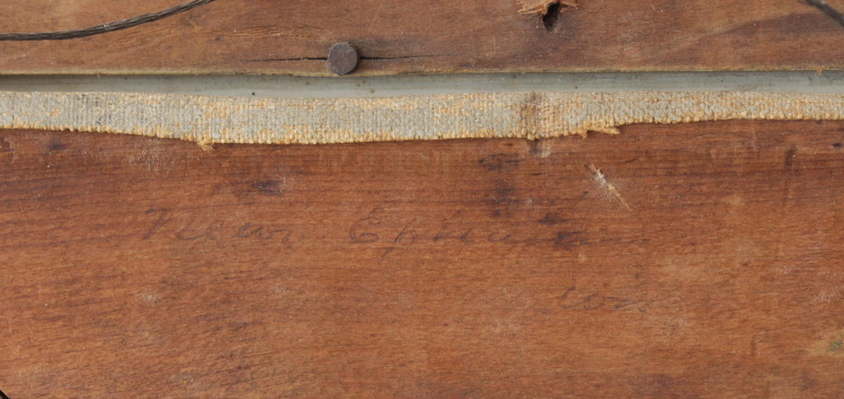 CONDITION: Several flecks of paint loss, repair to tear in the middle portion of the painting, needs cleaning, sold as is.