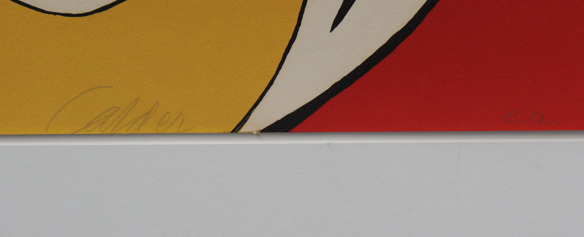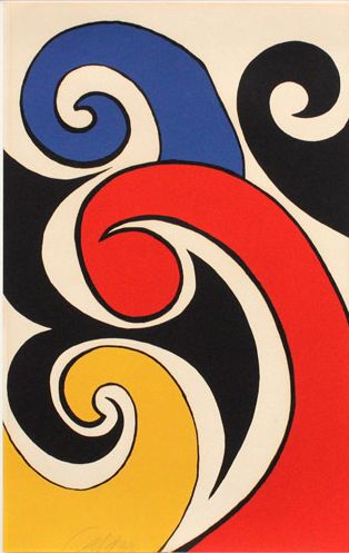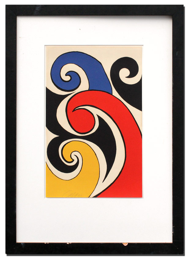 CALDER, Alexander, (American, 1898-1976): Lithograph with Waves and Color, 19 3/4'' x 12 1/2'', marked EA lower right, signed and pencil lower left, black frame with wear 32 1/2'' x 23 1/2''.