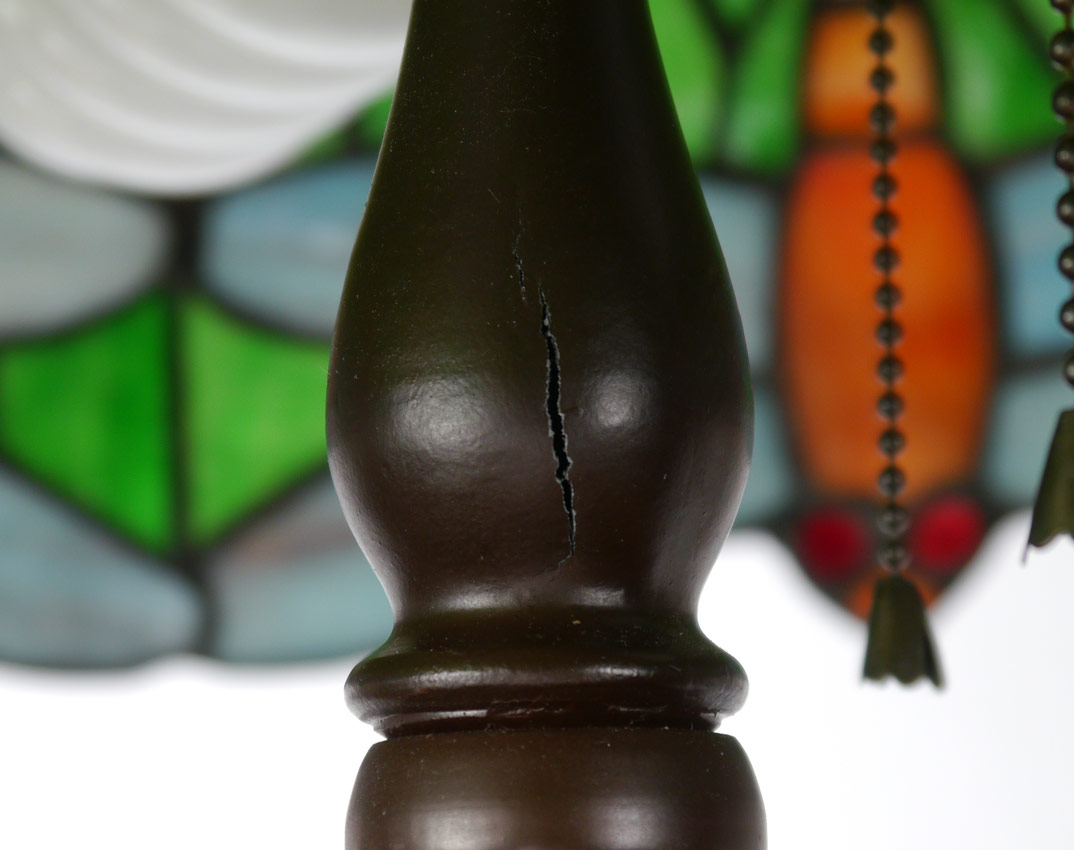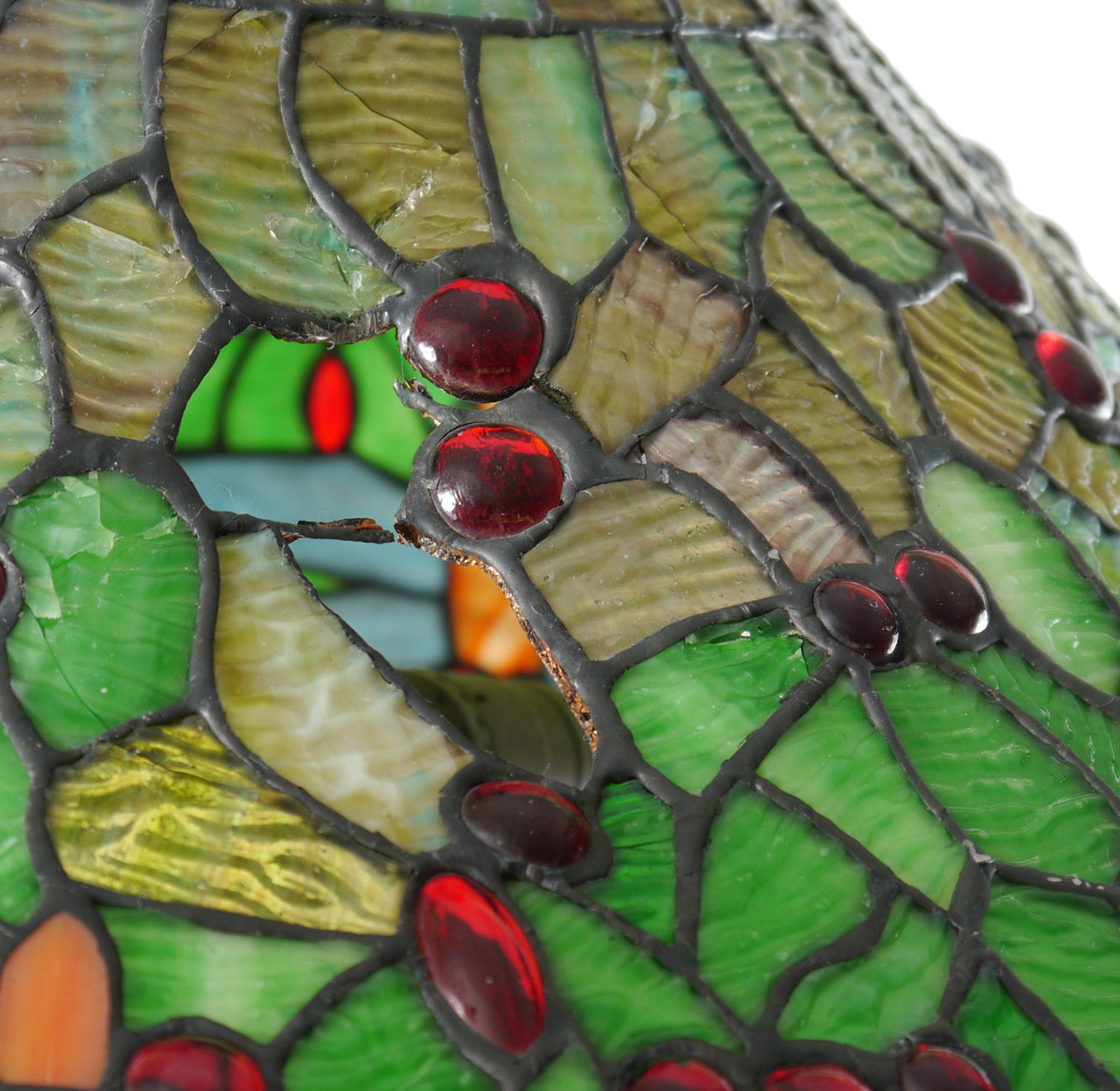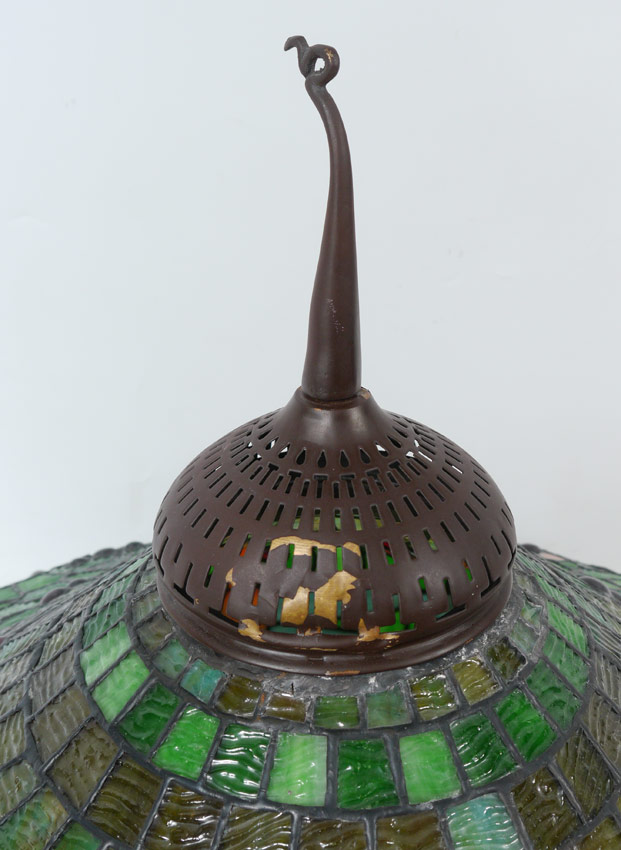 CONDITION: This shade has had trauma and there is loss of glass and damage to metal.