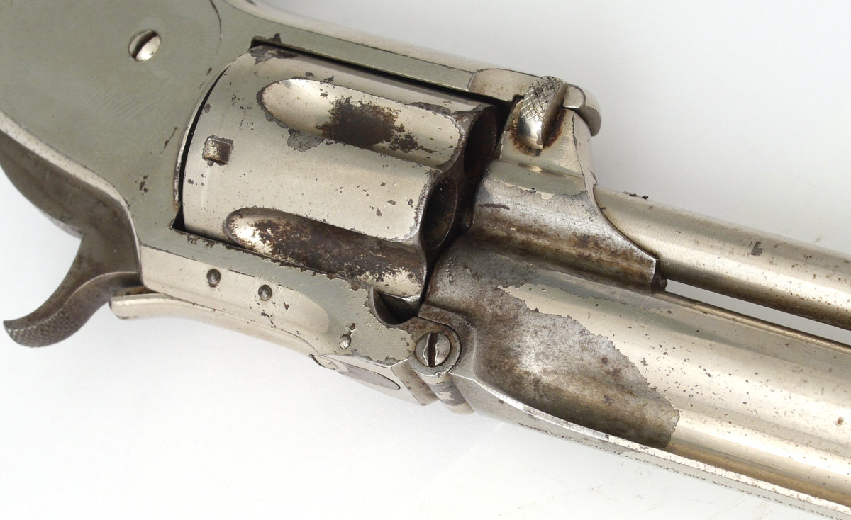 CONDITION: Spotting and wear to nickel finish. Burchard Galleries does not endorse the firing of ANY antique firearm.