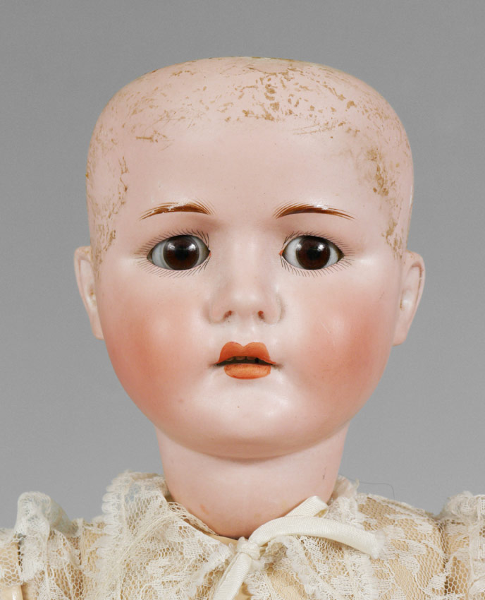 CONDITION: The head has alot of glue residue from the wig. General worn condition.