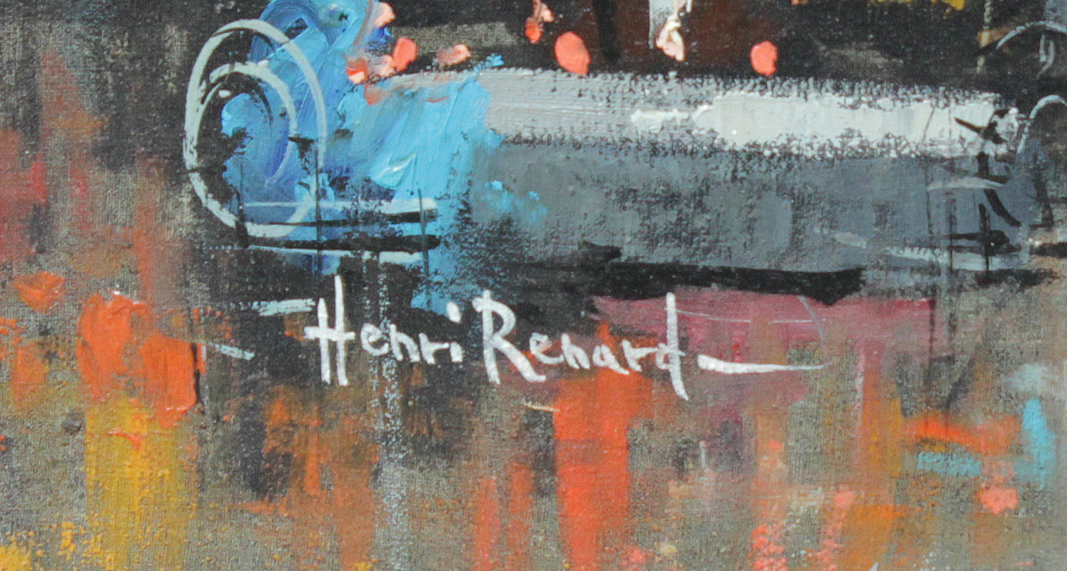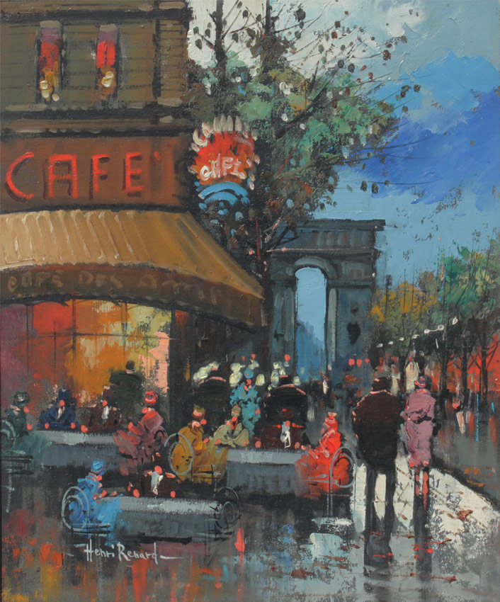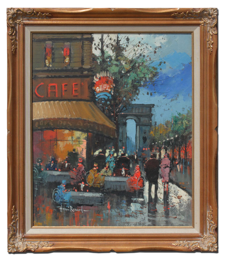 RENARD, Henri, (French, 19th/20th Century): Parisian Cafe Street Scene, Oil/Canvas, 24'' x 20'', signed lower left, encased in period carved and gilded frame 30'' x 26''.