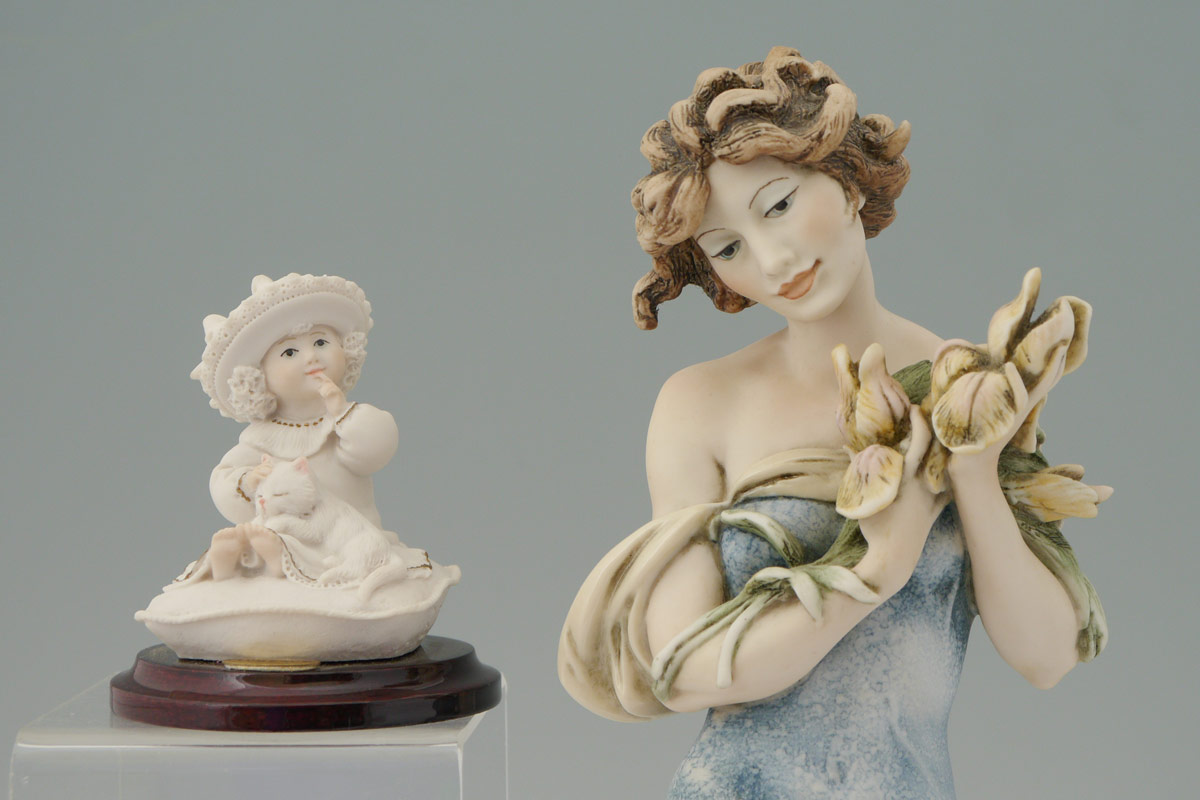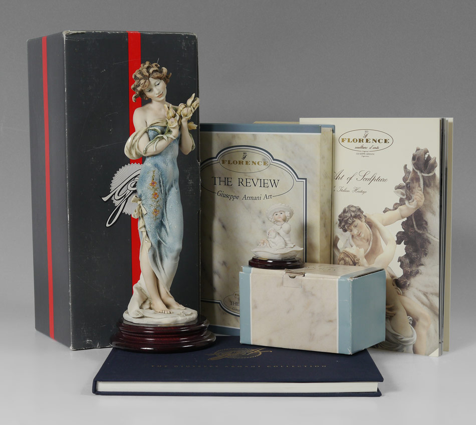 GIUSEPPE ARMANI FLORENCE SCULTURE d'ARTE COLLECTION: To include figurine IRIS 0628E, 13 3/4''h. and QUIET PLEASE 0446F, Member's Gift 1997, 3 1/4''h. Both with boxes, Quiet Please with pamphlet. Sold with The Art of Sculpture book and The Review hard folio from the The Society member collectors club with contents.