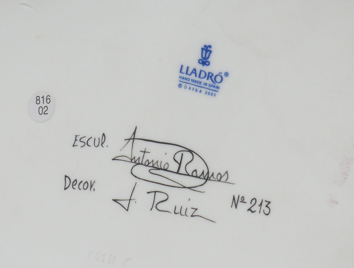 LLADRO PORCELAIN FIGURE ''CADENCE'': #1872, Limited Edition 213/1000, Antonio Ramos sculptor, issued 2002 retired 2013, approx. 30'' x 13'' x 12'', shorter due to missing harp, with stand 1 1/4''h. x 16'' x 12''.