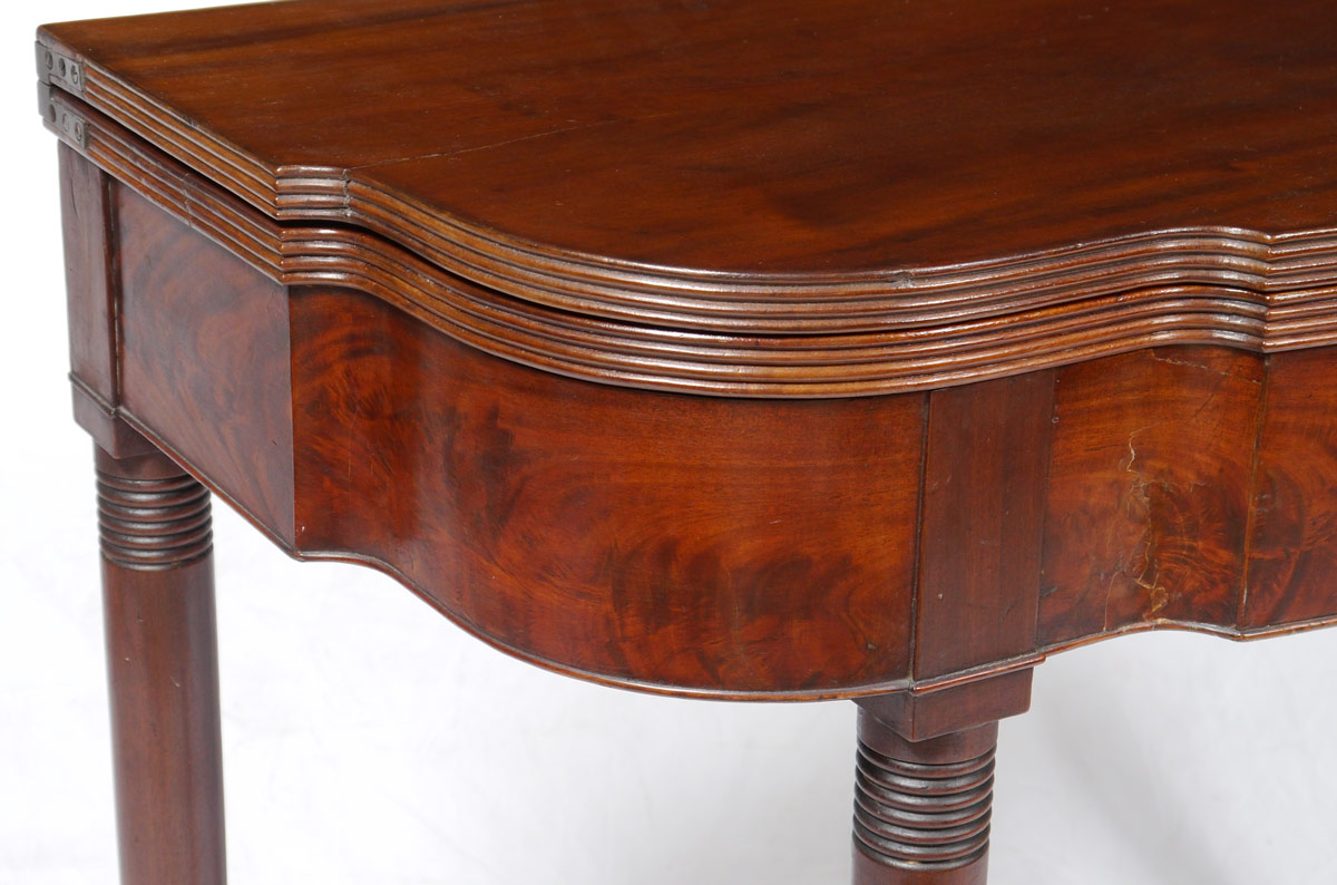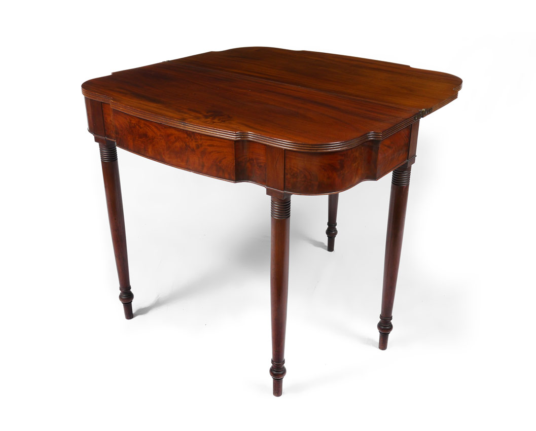 MAHOGANY LIFT TOP GAME TABLE: 19th century lift top on 4 turned legs. 29 3/4'' h. x 36'' x 18''.