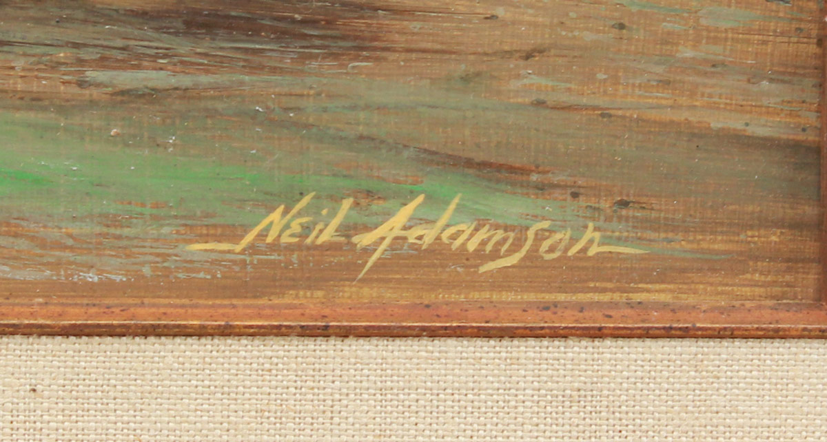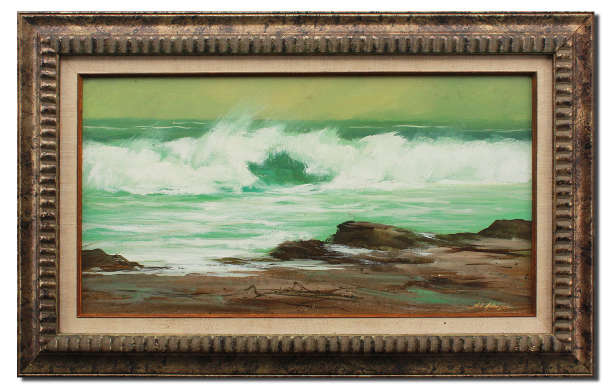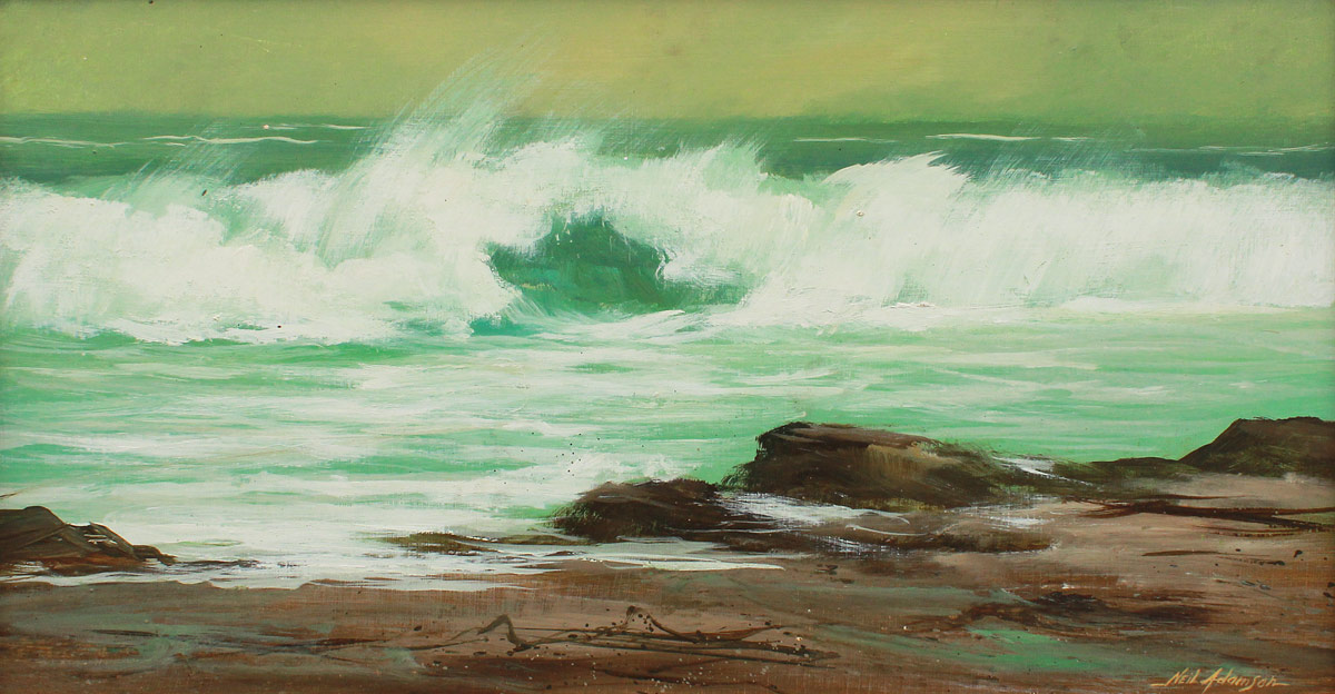 ADAMSON, Neil, (American, 20th C.): Stormy Surf, Oil/Board, 12'' x 24'', signed lower right, gilded frame with minor wear 18'' x 29'', Early work by Adamson, verified by the Artist.