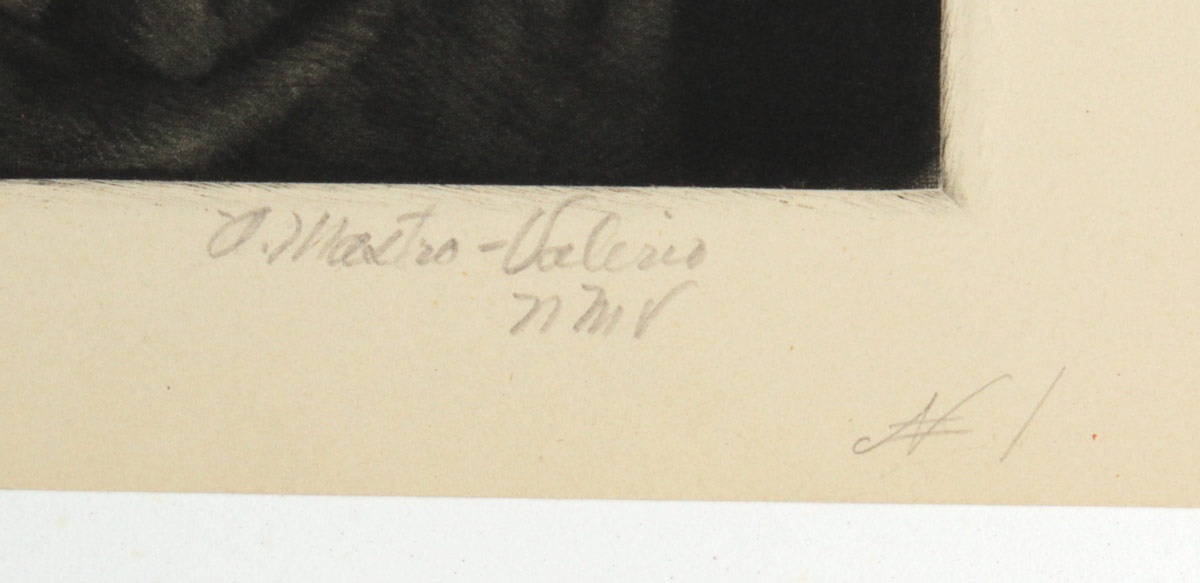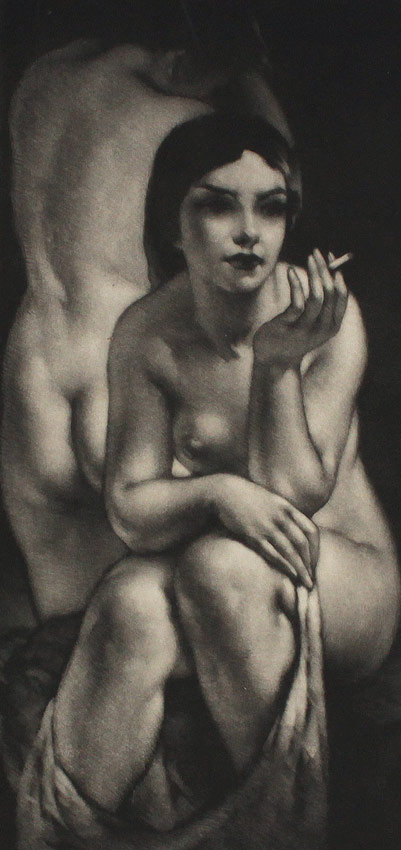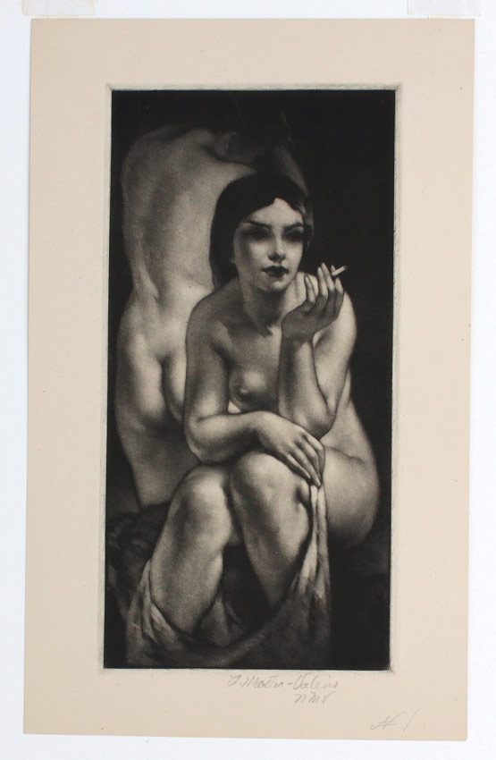 MASTRO-VALERIO, Alessandro, (American, 1887-1953): Sitting Nude, Smoker, Mezzotint, 9 1/2'' x 5 7/8'' with margins, pencil signed lower right, float mounted to folding mat, signed most likely by the artist's wife.