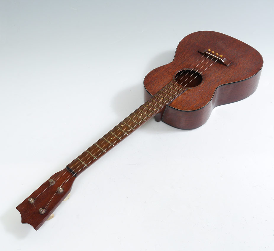 C.F. MARTIN BARITONE UKULELE: Marked C. F. Martin & Co., Nazareth PA. inside only. Back measures 14'' x 10''. Overall 30 3/4''.