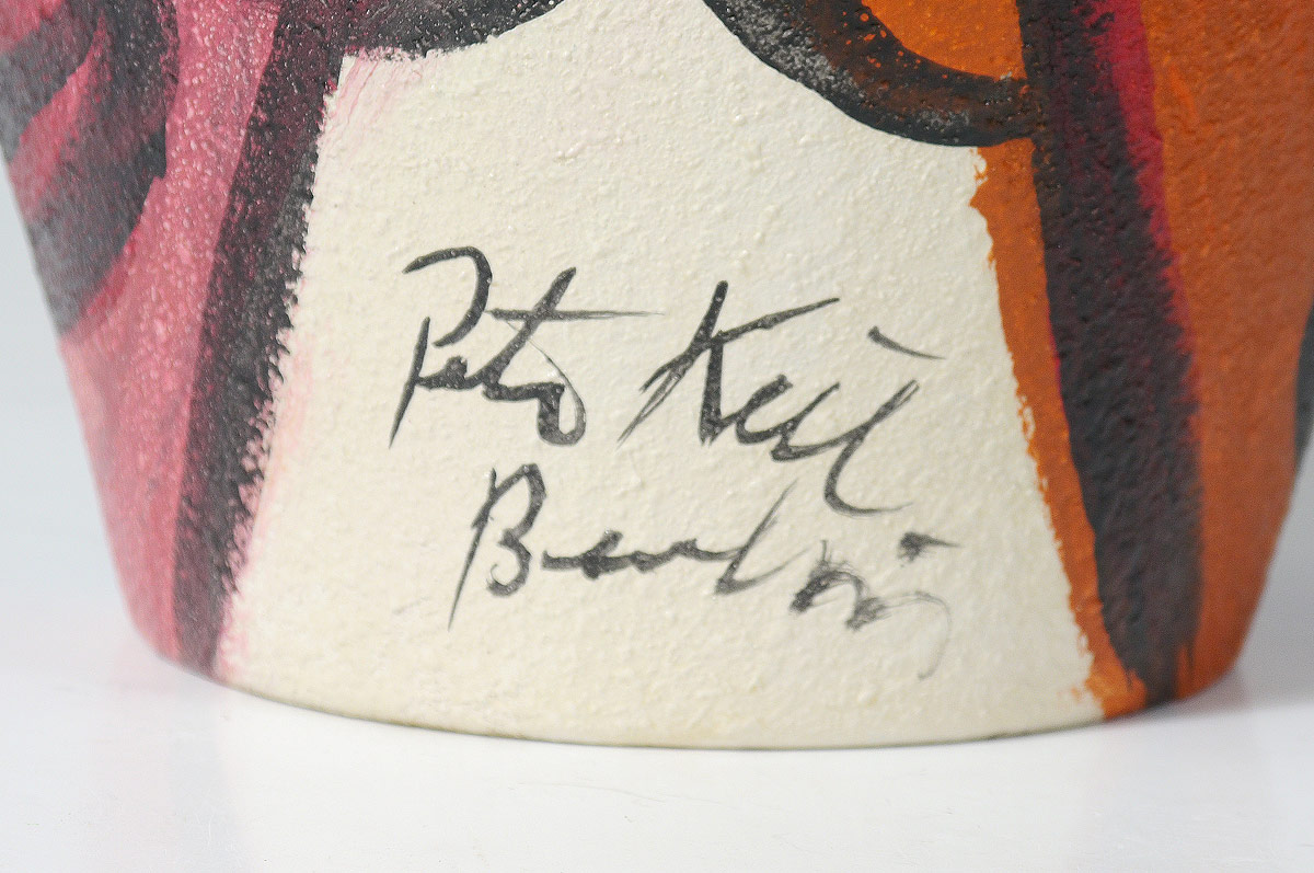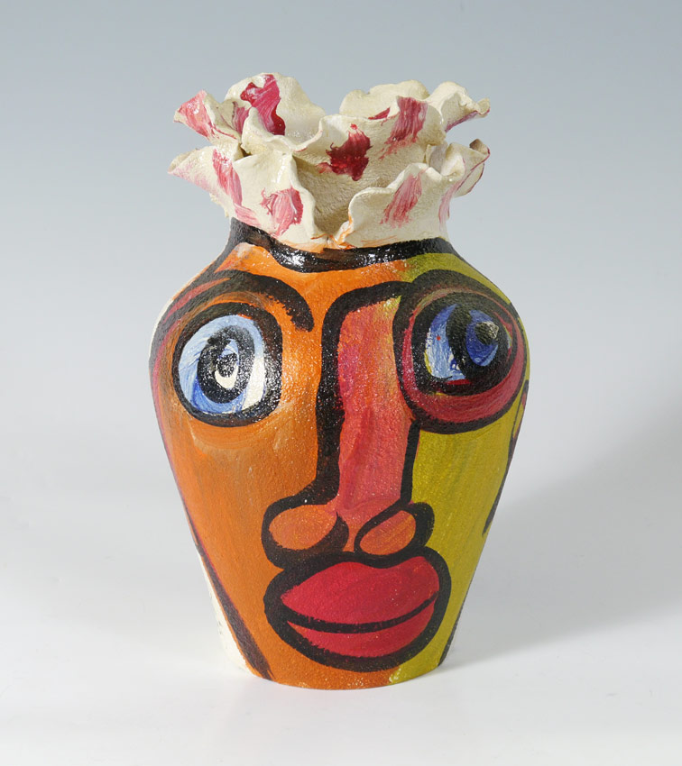PETER KEIL PAINTED PORTRAIT POTTERY VASE: 16'' h., ruffled rim to top, two faces on either side, signed and marked Berlin.