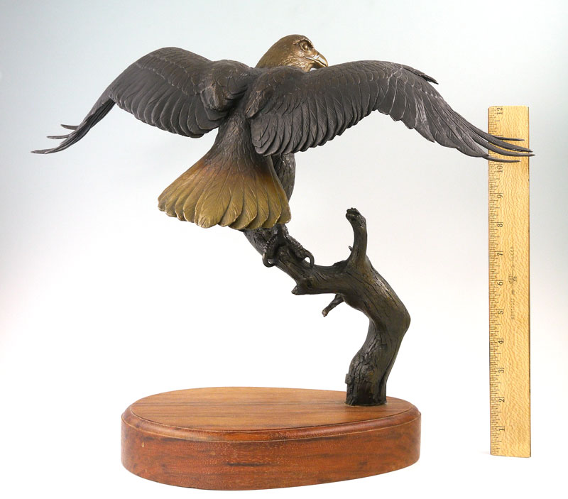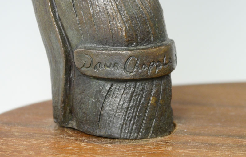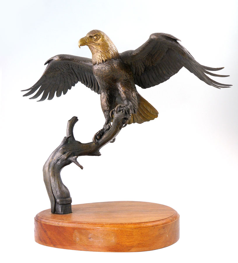 CHAPPLE, Dave, (American 1947-): ''Eagle Crest'', Bronze, 13'' h., 18'' w., affixed to wooden plinth, 15'' overall, incised signature to base.
