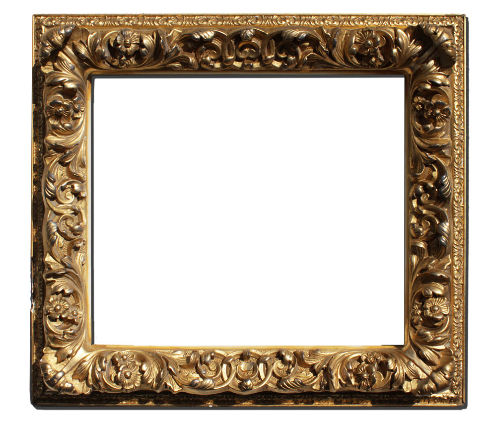 FINE HEAVY GILDED AND CARVED GESSO FRAME: Overall size 19 1/4'' x 21 1/4'', insert size is 15 1/2'' x 13 1/2''.