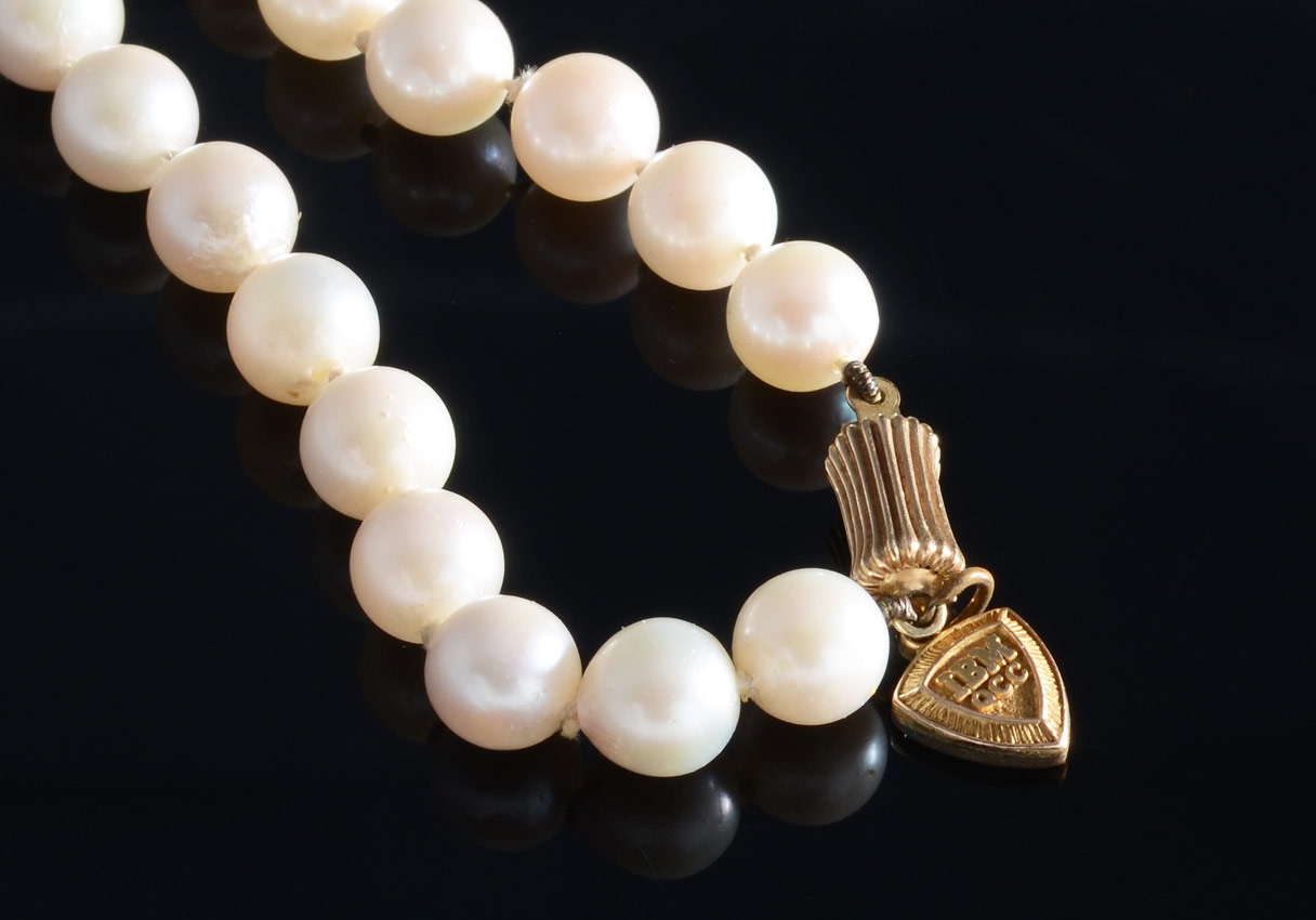SALTWATER 7.0 MM CULTURED PEARLS: Strand of 7.0 mm saltwater cultured pearls. Cream color with no overtone. Blemished. 14K yellow gold clasp weight approx. .5 grams. Length: 24''