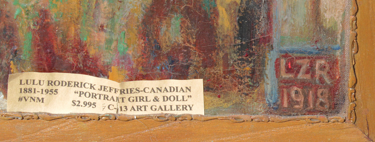 RODERICK, Lulu Zita, (Nova Scotian, 2oth Century): : Portrait of a Young Girl with Doll, KPN, Oil/Canvas, 30'' x 22'', monogrammed lower right, dated 1918, painted frame with wear, 32 1/2'' x 24 1/2''.
