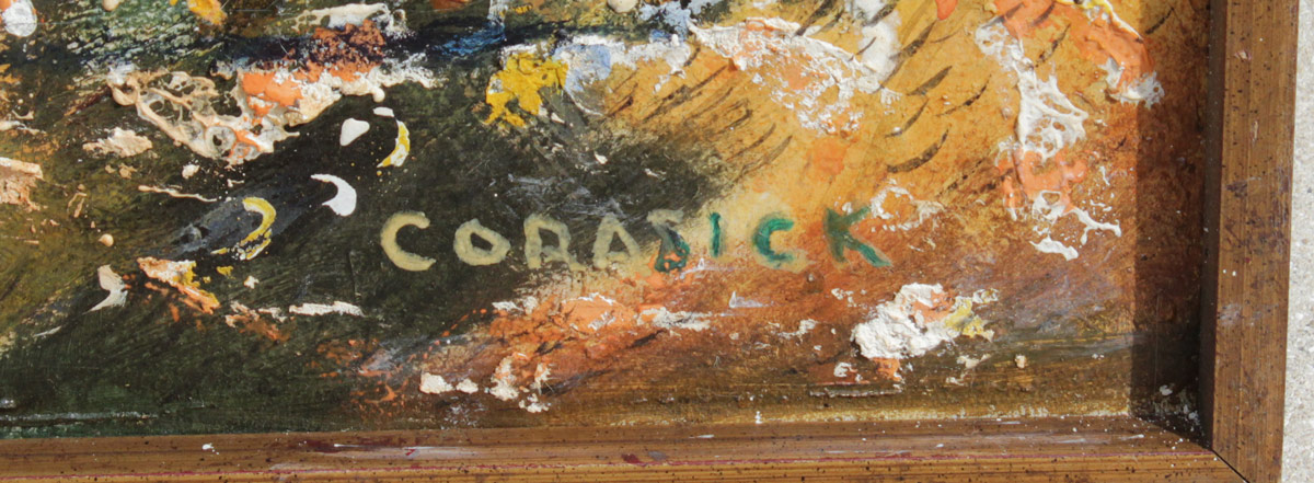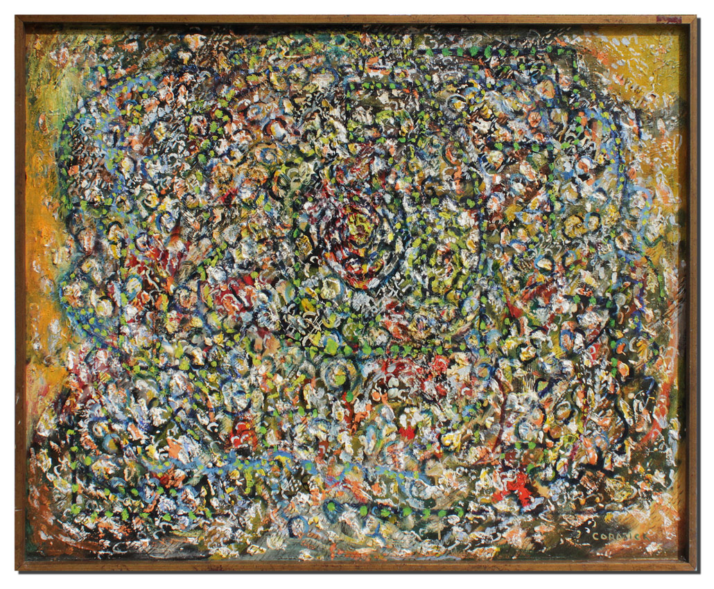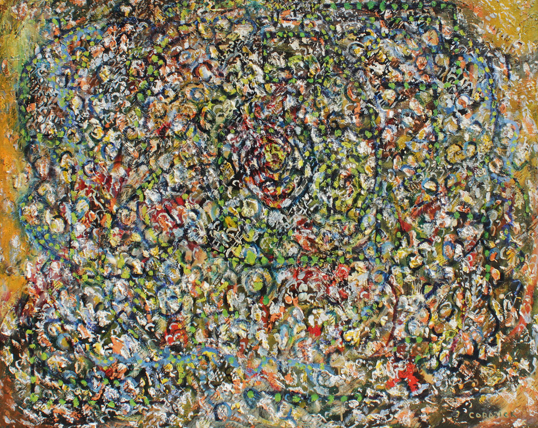 LARGE WILLIAM CORASICK ABSTRACT PAINTING: Texturized Abstract Composition, Oil/Canvas, 40'' x 50'', signed lower right, encased in gilded frame with wear, 41'' x 51''.