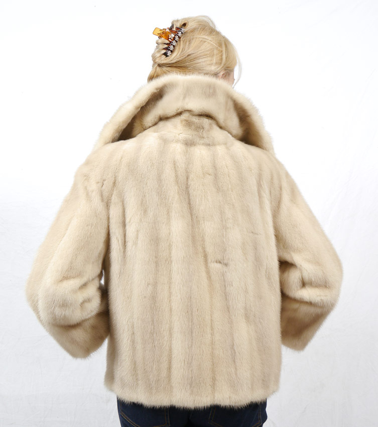 A SASSY LITTLE MINK JACKET: Blonde fur jacket with wide collar, bell sleeves and exterior pockets. Measures approx. 24'' collar to hem and 17'' shoulder to shoulder.